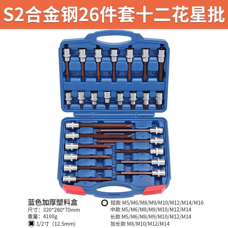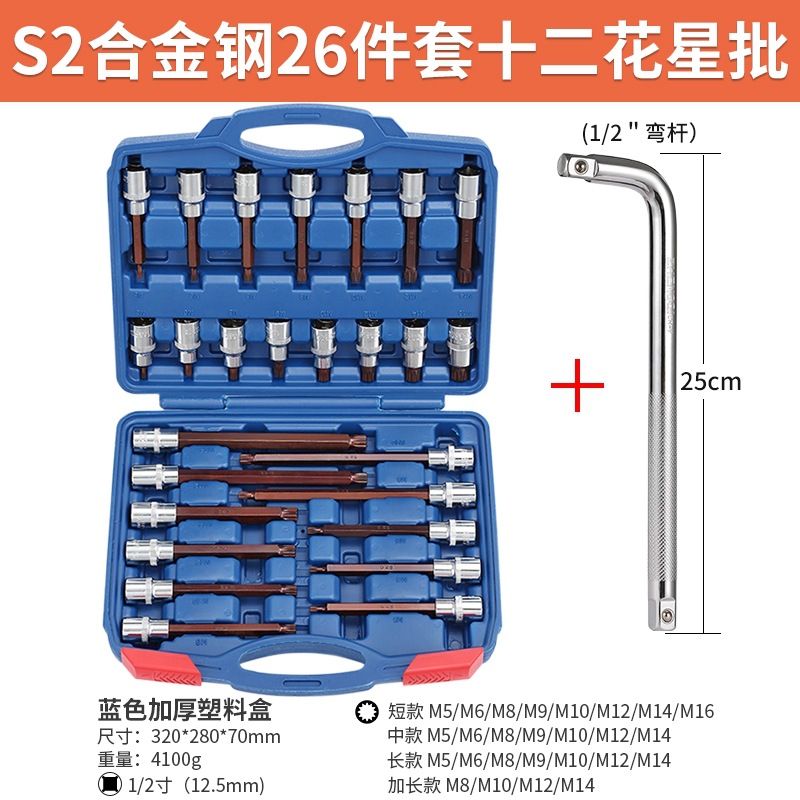 s2 steel twelve flower star batch (m26pc) [26 pieces of plastic box] + ratchet