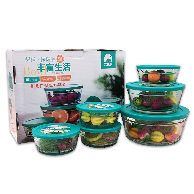 fanke freshness bowl six-piece set glass fresh bowl freshness bowl gift bag suit creative tableware insulated lunch box gift wholesale