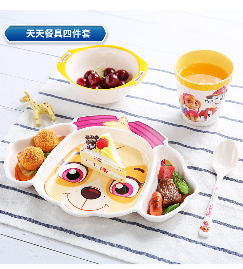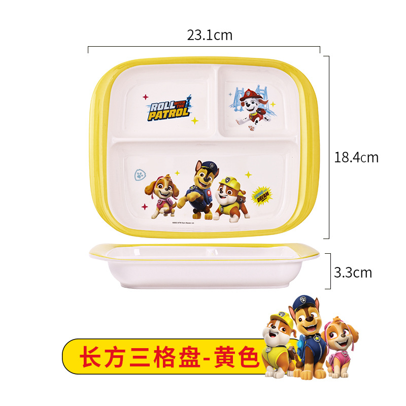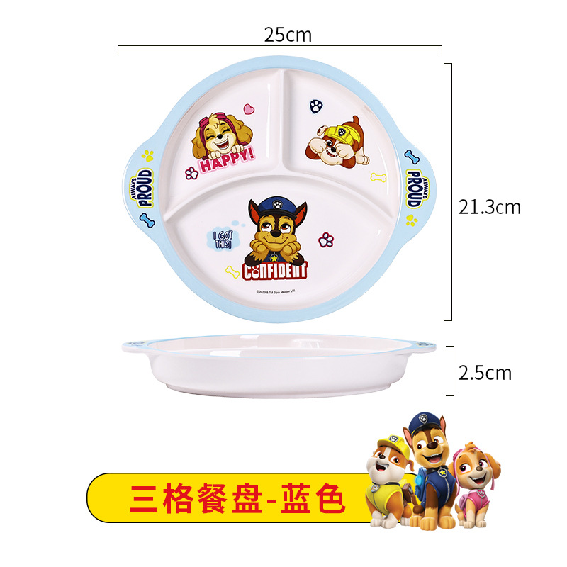 processing customized paw patrol melamine baby toddler and baby dining grid plate with handle children's tableware set 中文版