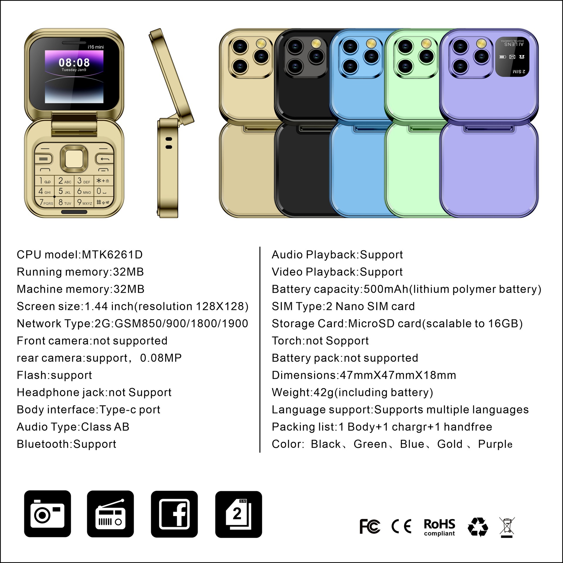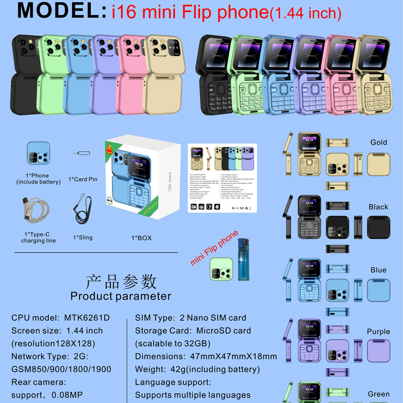 cross-border foreign trade i6mini mini flip mobile phone non-smart phone renovates machine button elder people mobile 2g foreign language