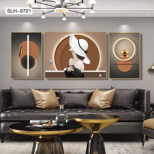 [boutique decorative painting] aluminum alloy crystal porcelain bright crystal modern character light and shadow series triple decorative painting 中文版