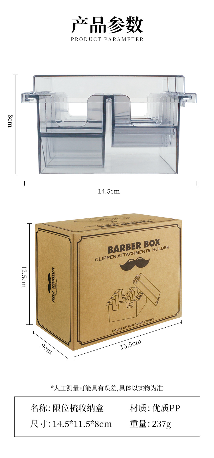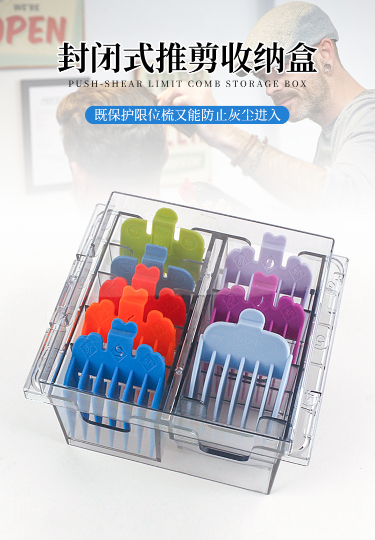 electric clipper positioning comb storage box transparent desktop display with lid 8 card position caliper protection box 中文版