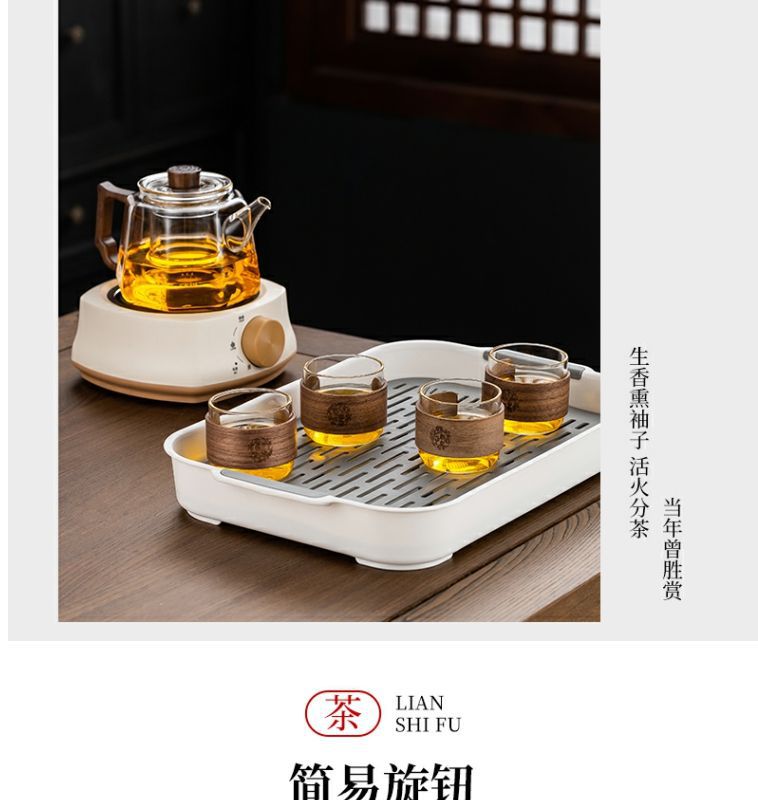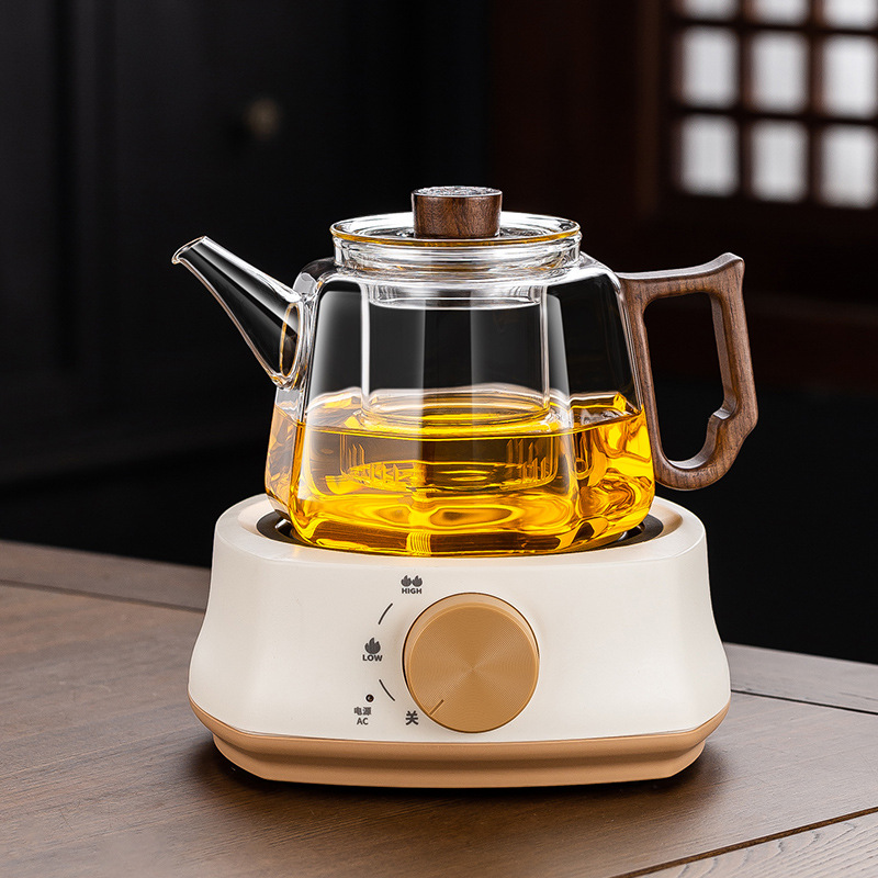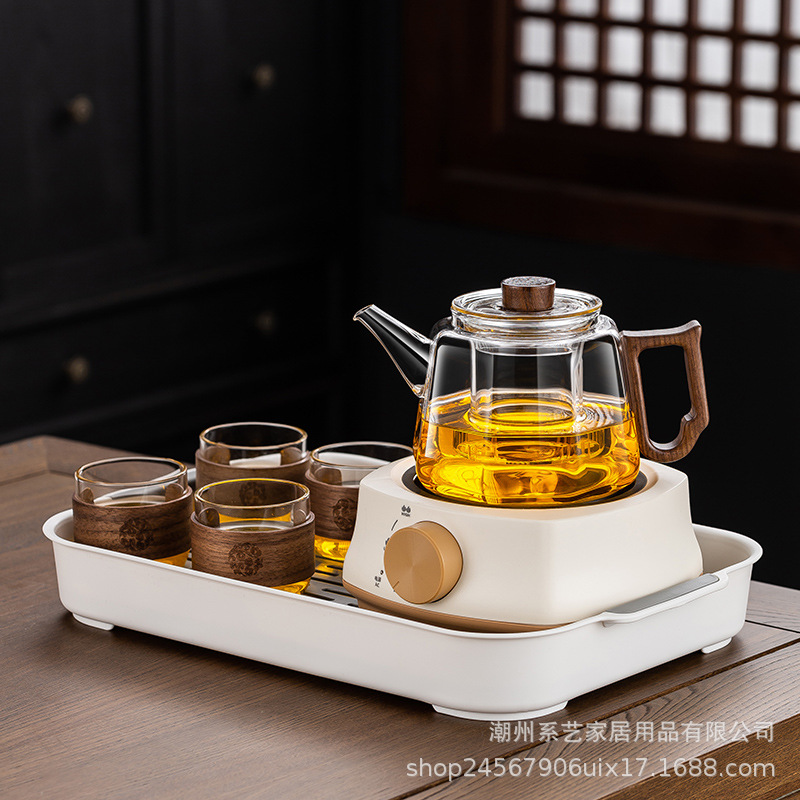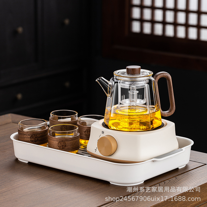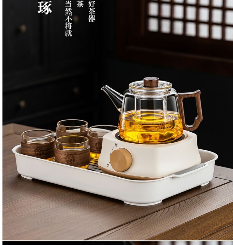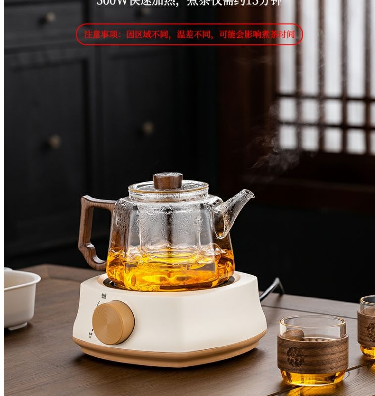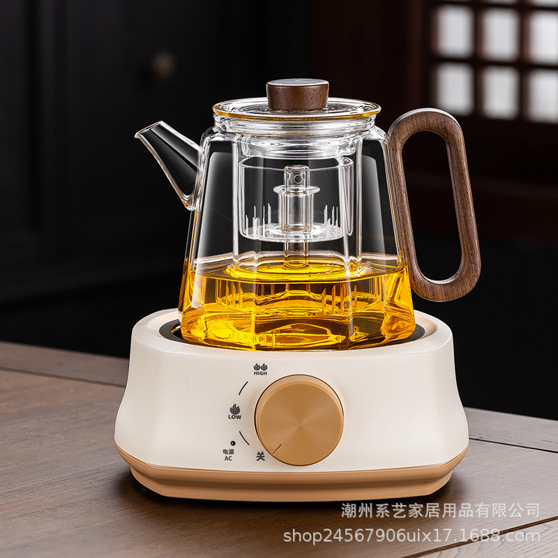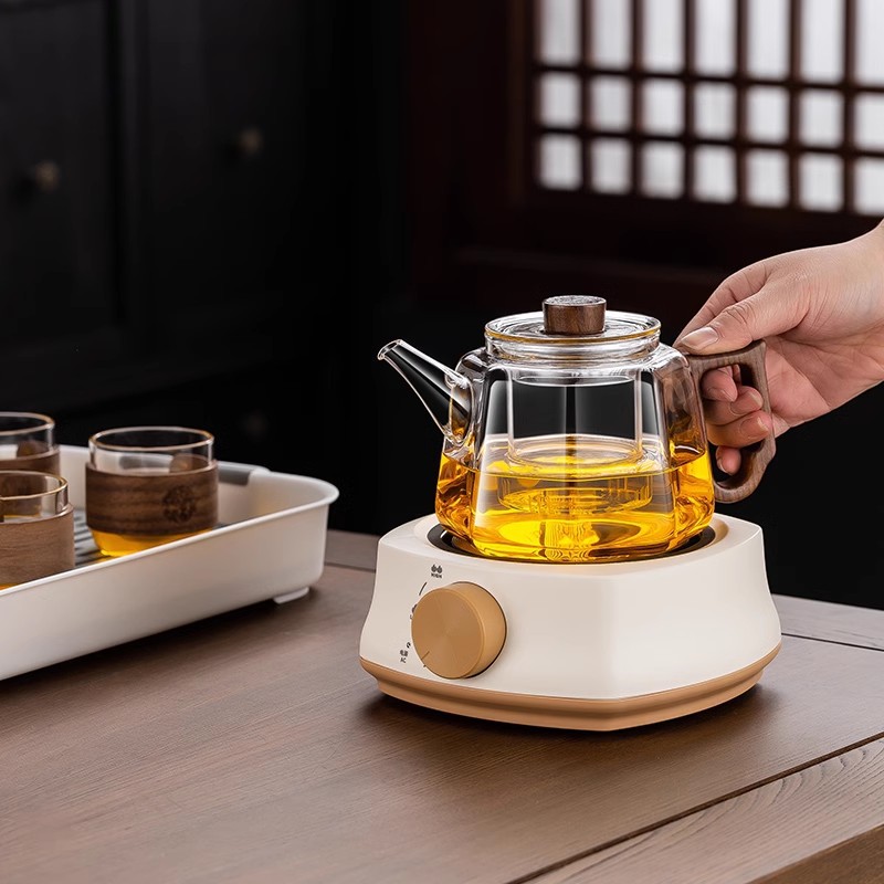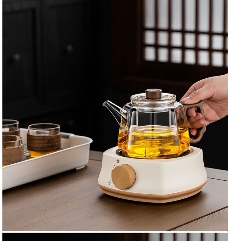 [transparent] linglong tea brewing pot + square furnace [khaki]]