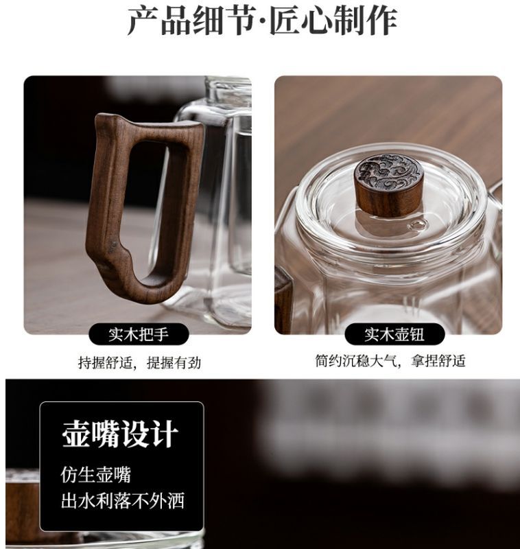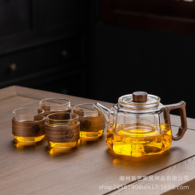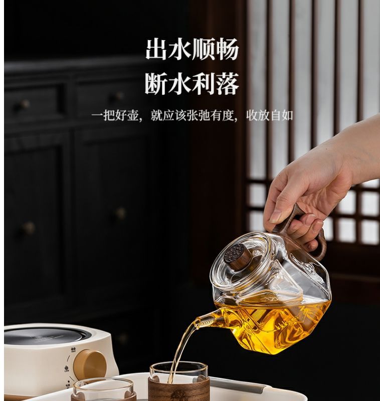[transparent] linglong tea brewing pot + square stove [khaki] +4 cups + stationery bag