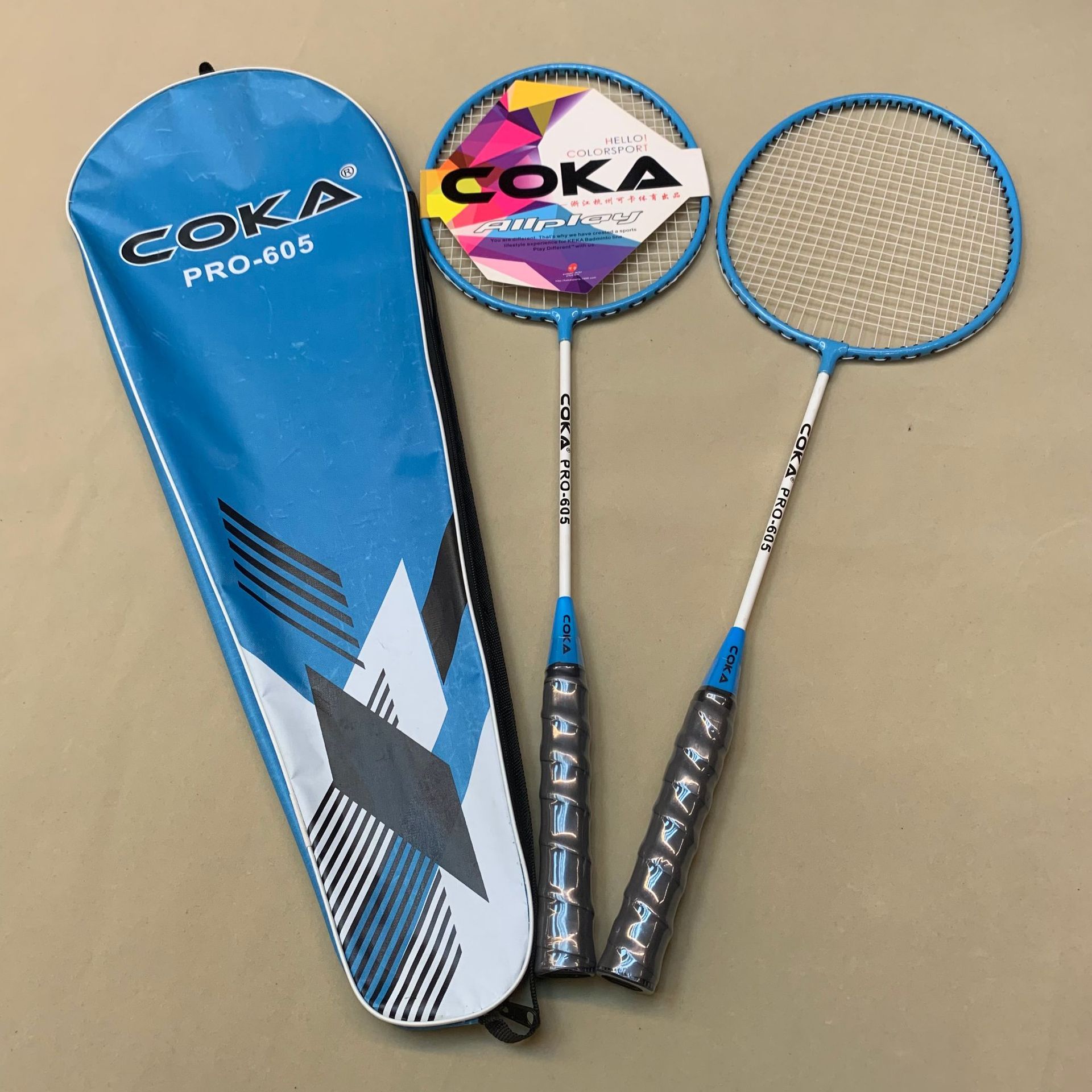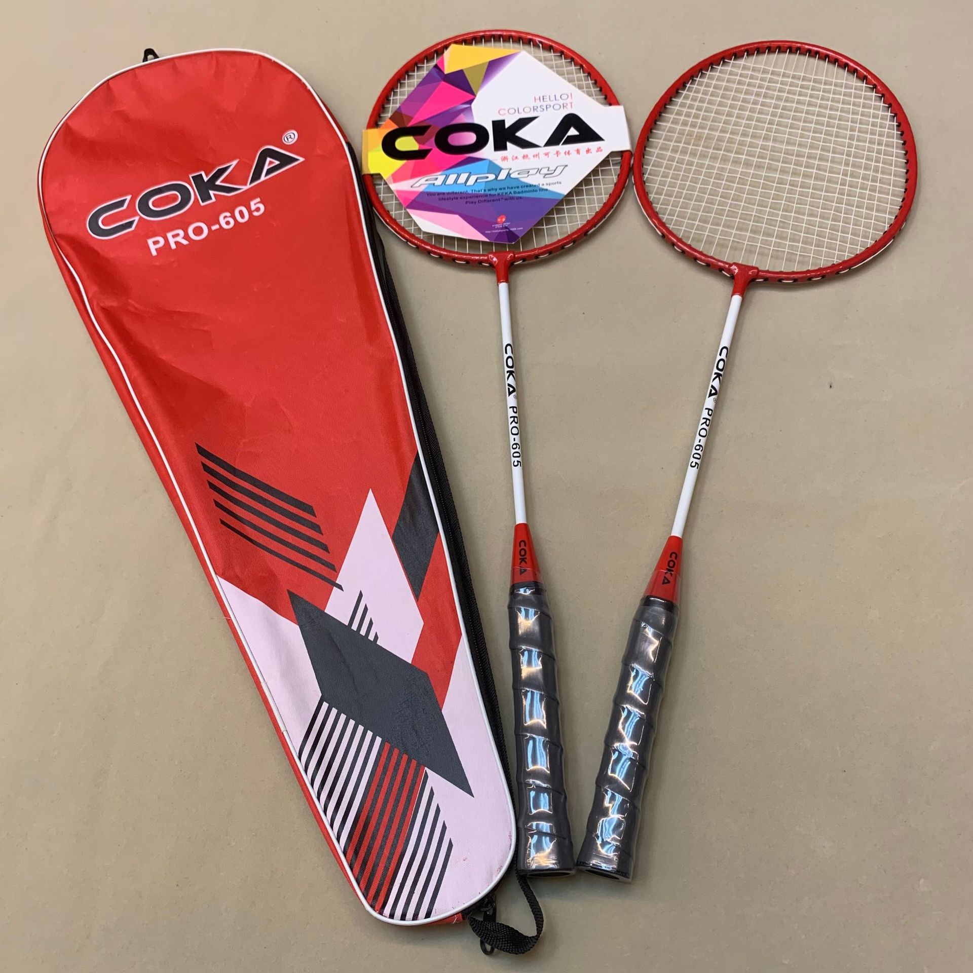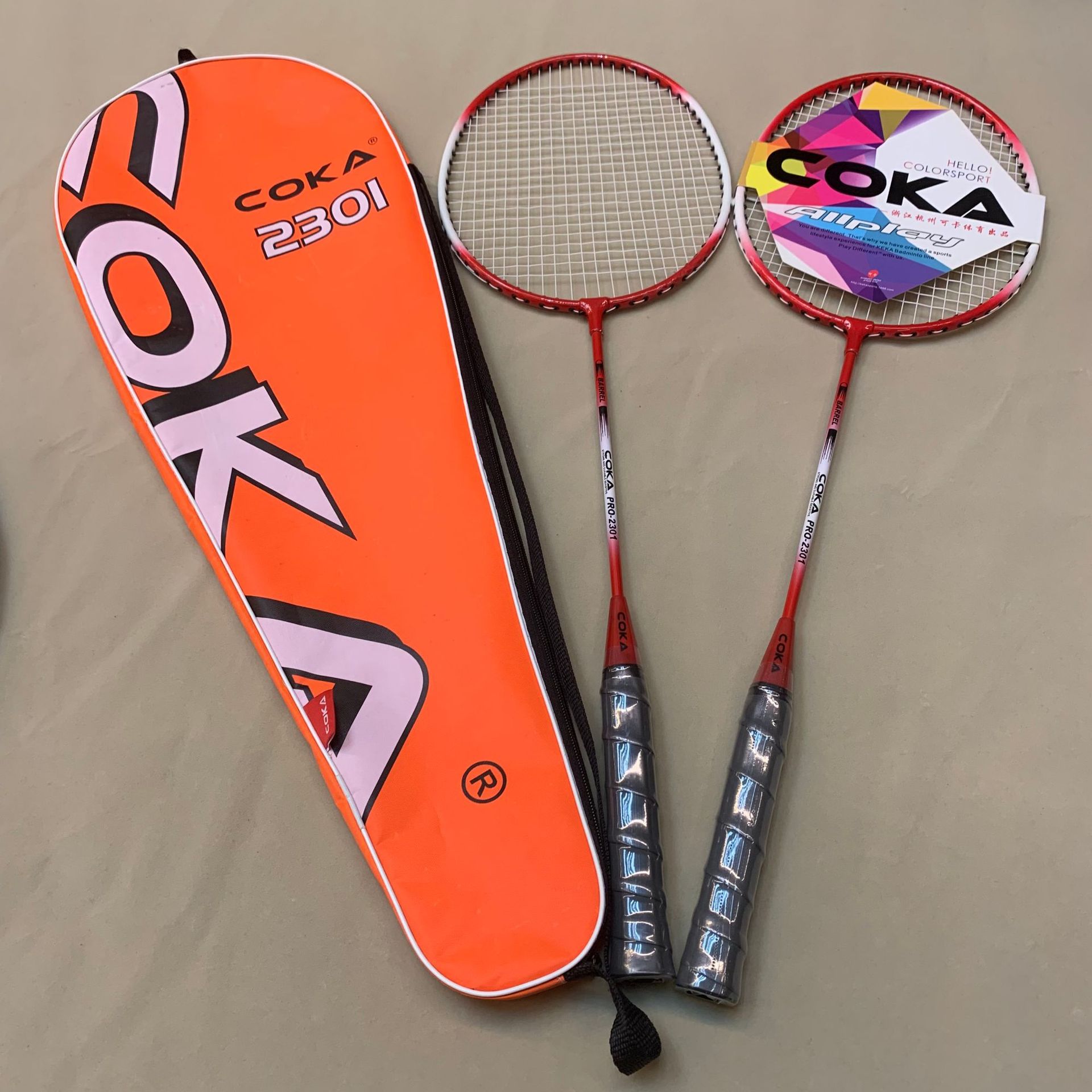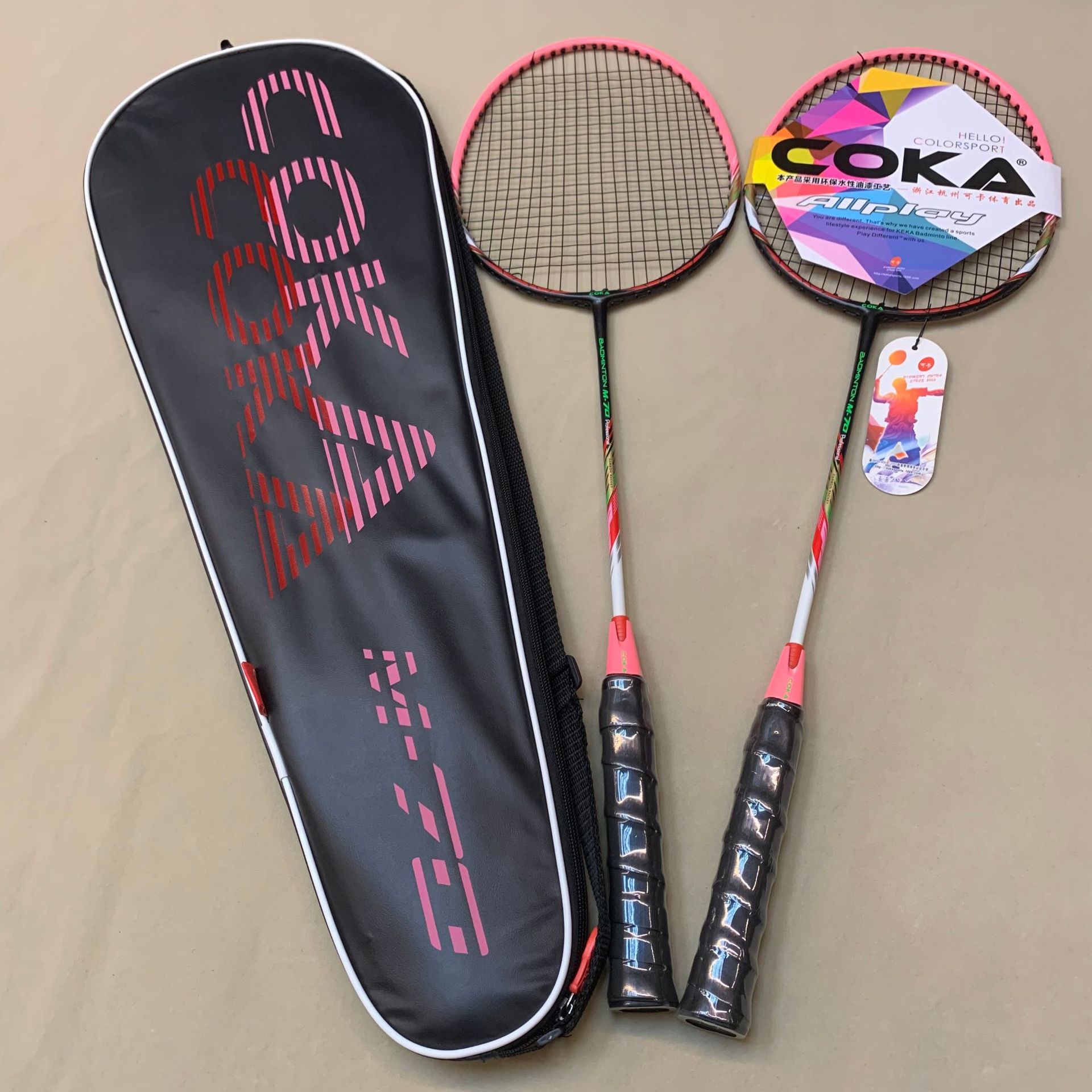 Model: 227 Four colors for the racket bag: Oxford cloth Two colors for the racket: Iron alloy split Sponge handle for a comfortable grip