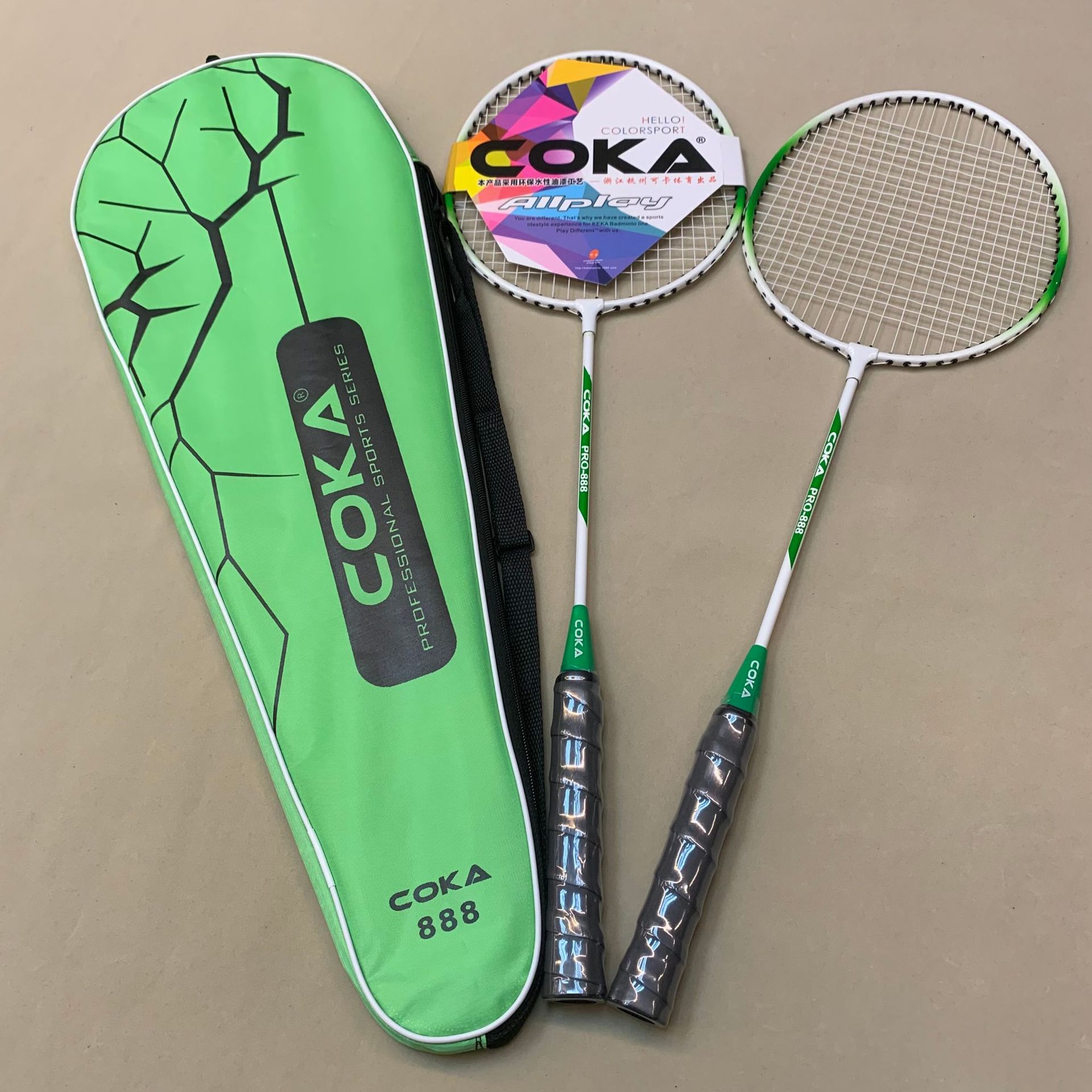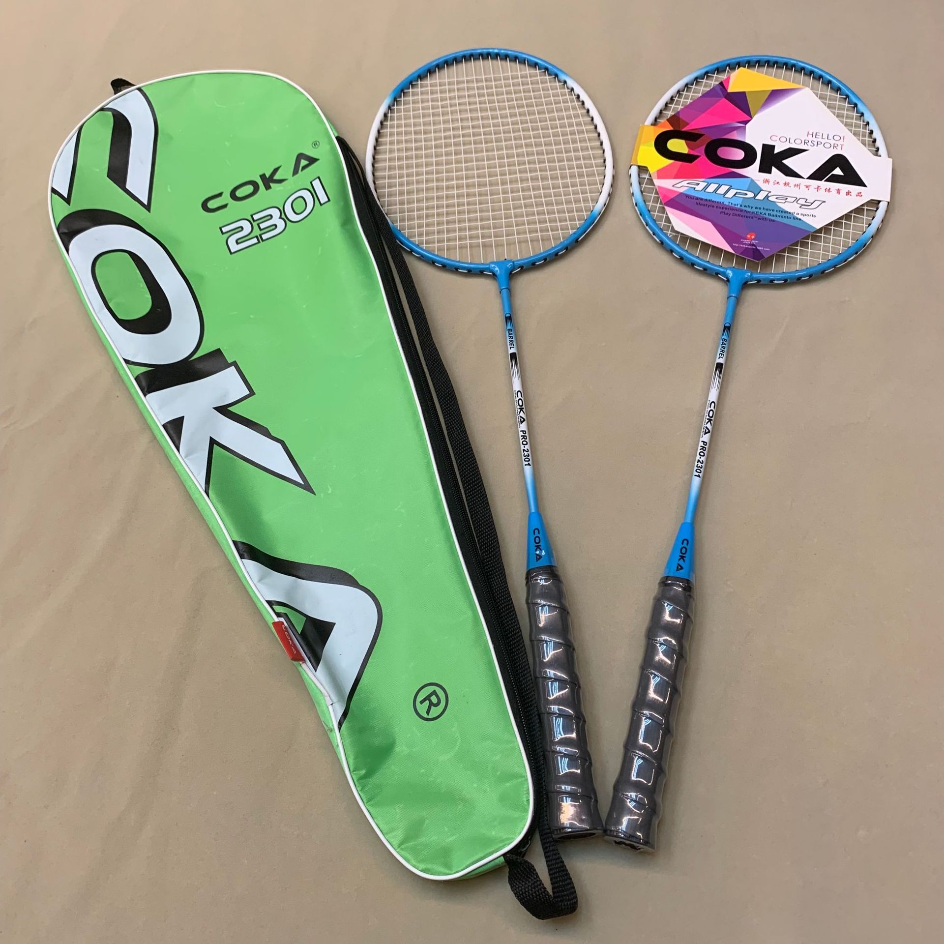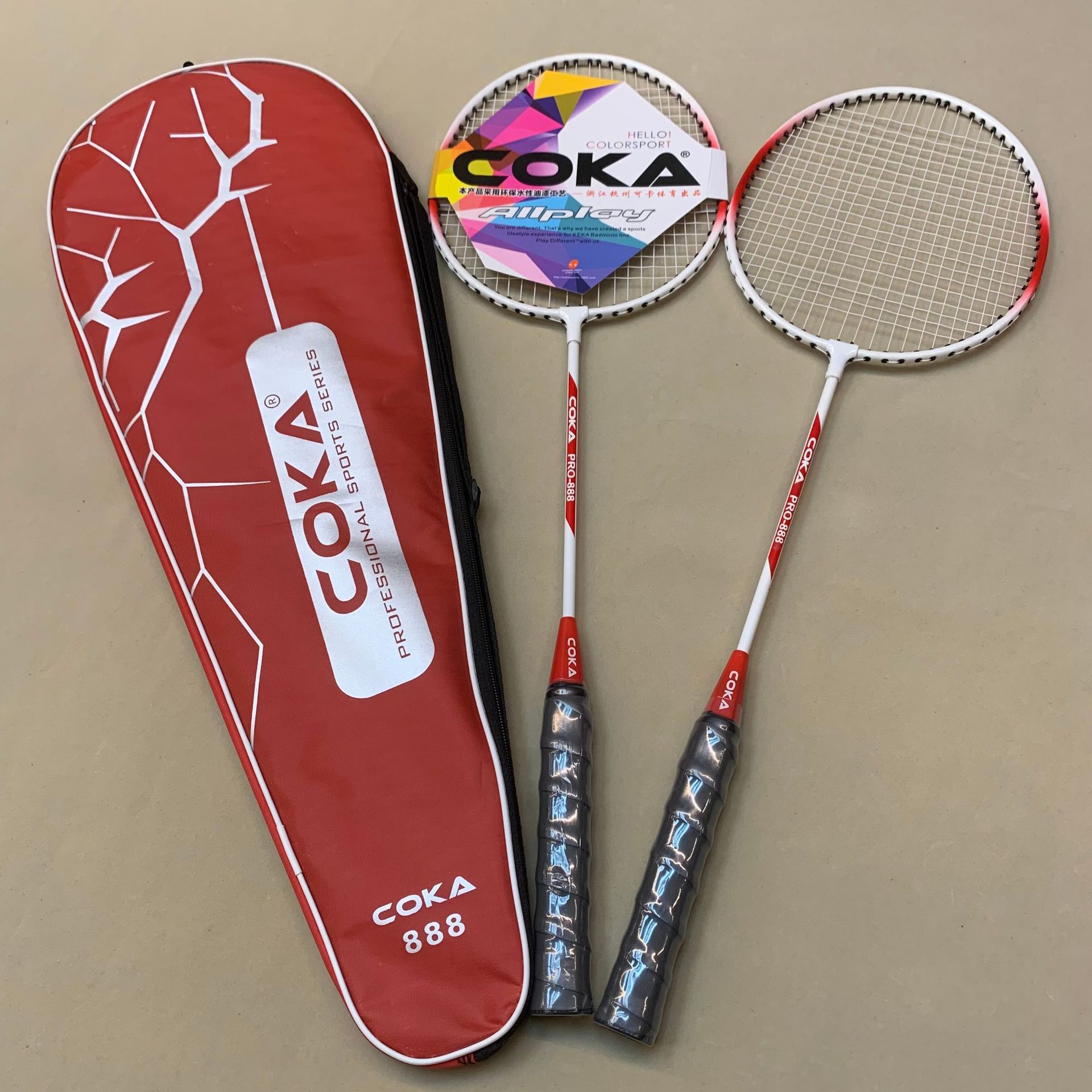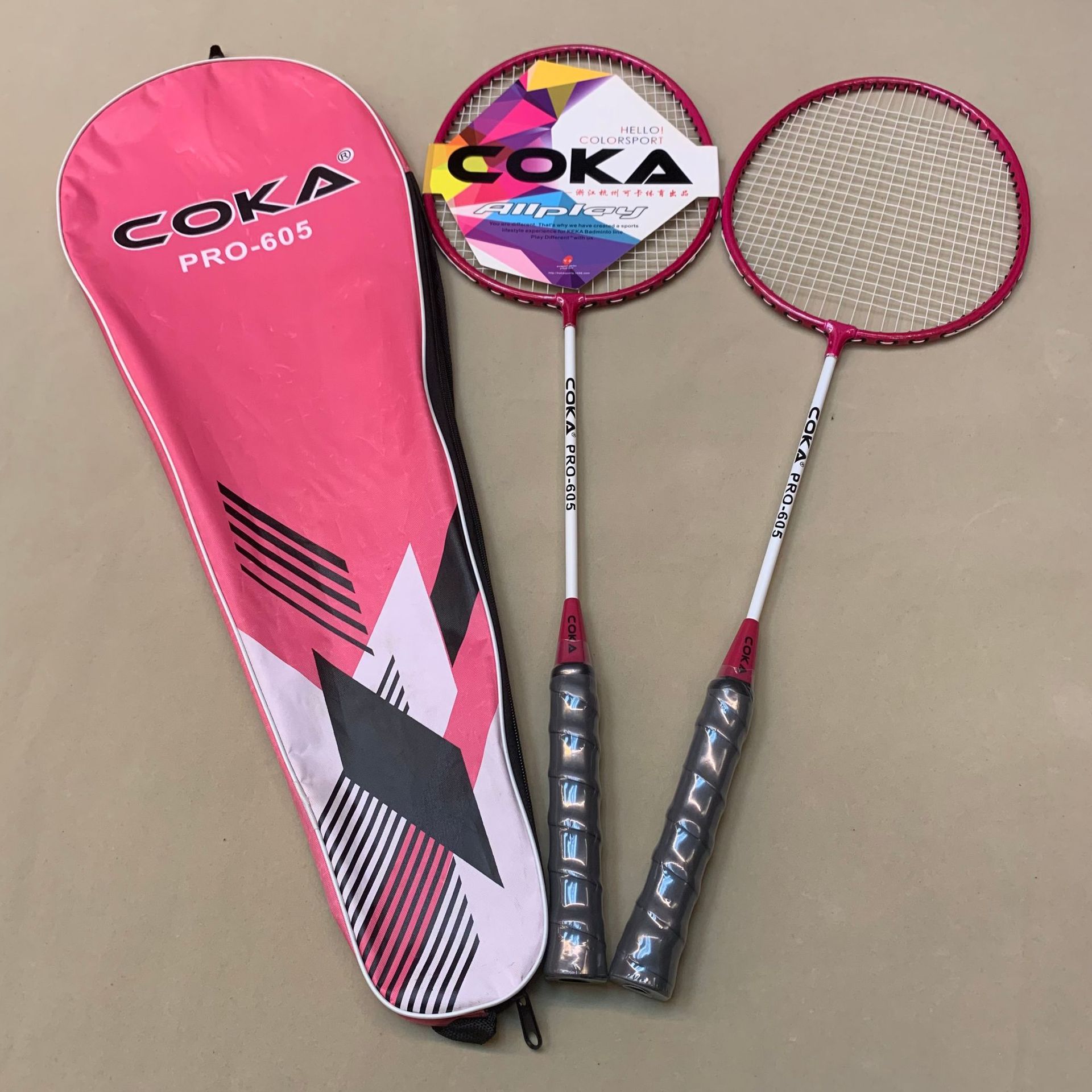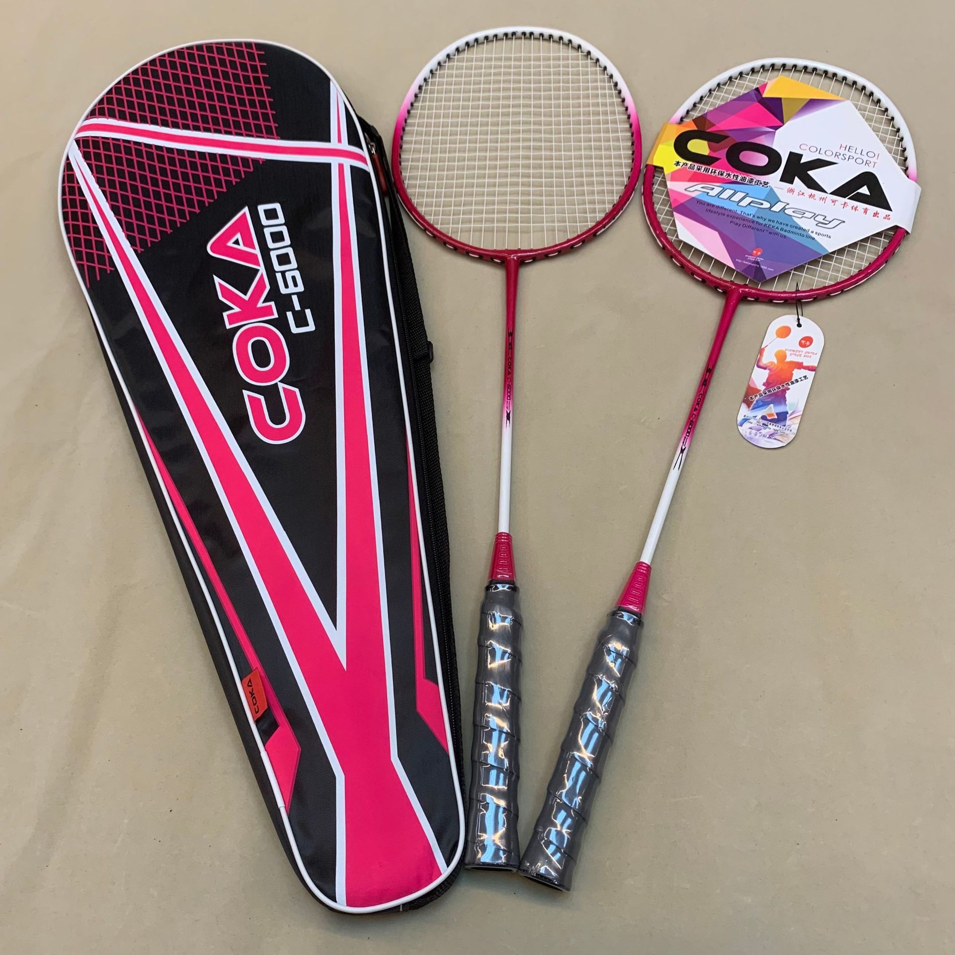 Model: 227 Four colors for the racket bag: Oxford cloth Two colors for the racket: Iron alloy split Sponge handle for a comfortable grip