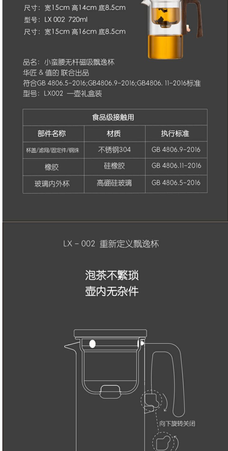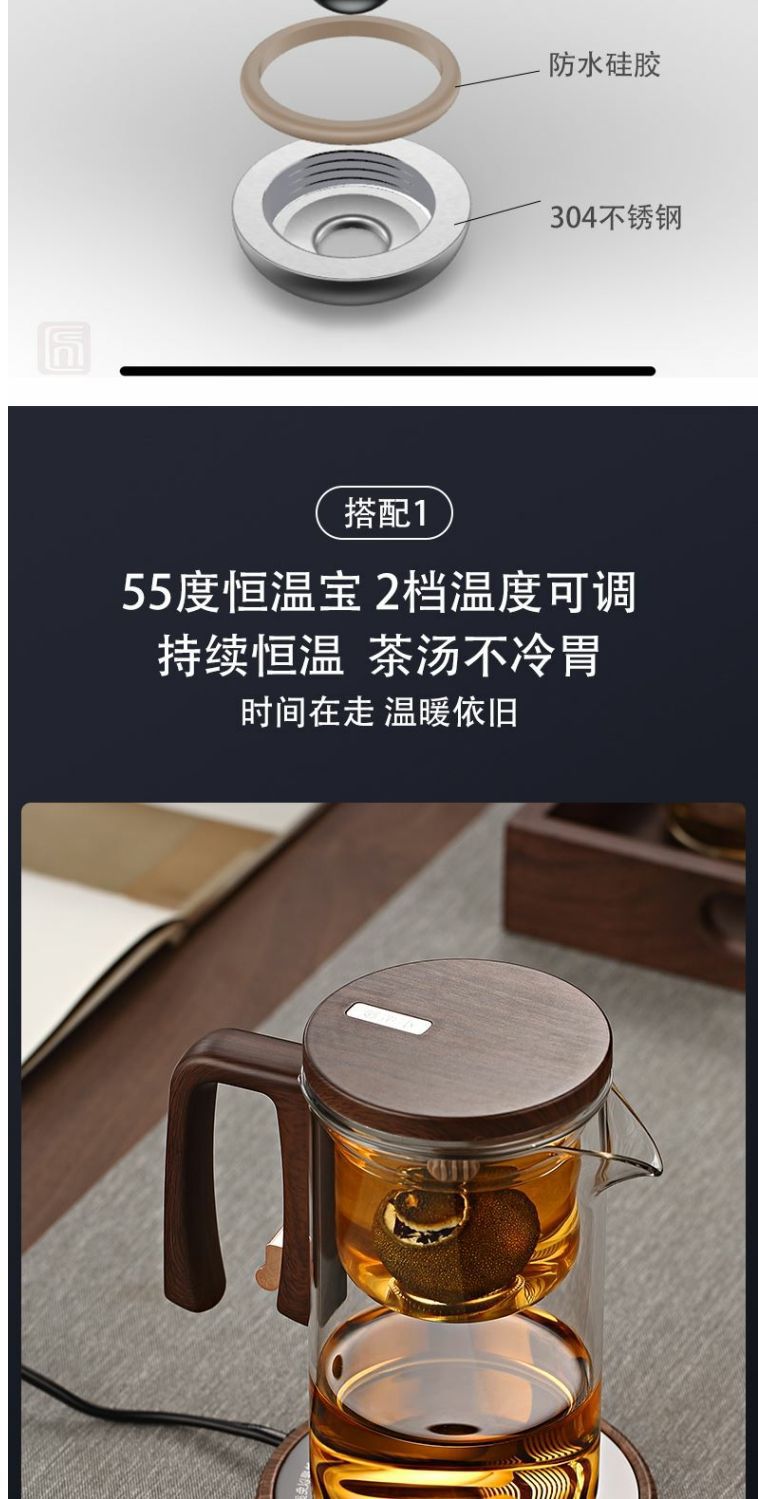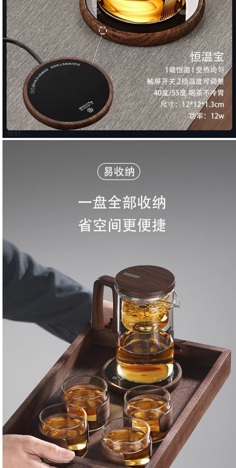 transparent waist 720ml cup +15w cup heater + walnut tray
