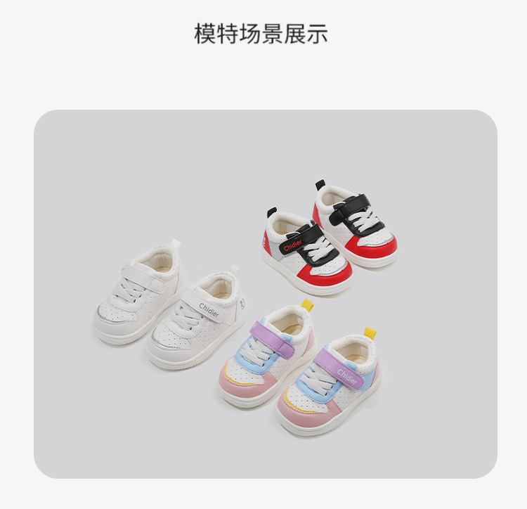 caidi ai 1-2-3 years old microfiber waterproof leather baby shoes non-slip soft bottom boys girls toddlers sports board shoes 中文版