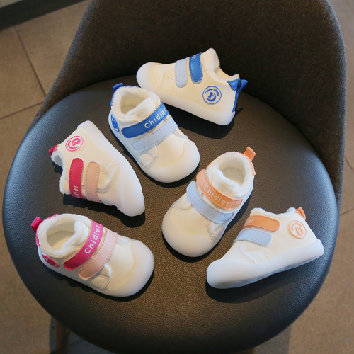 Cai Di Ai's new winter model with fur insulation and warm baby shoes for 13-year-old children with soft leather soles and anti-skid baby learning to walk shoes