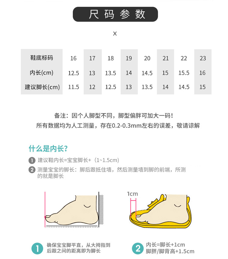 Babies should choose functional shoes according to the foot length, increasing 0.5-1 centimeters.