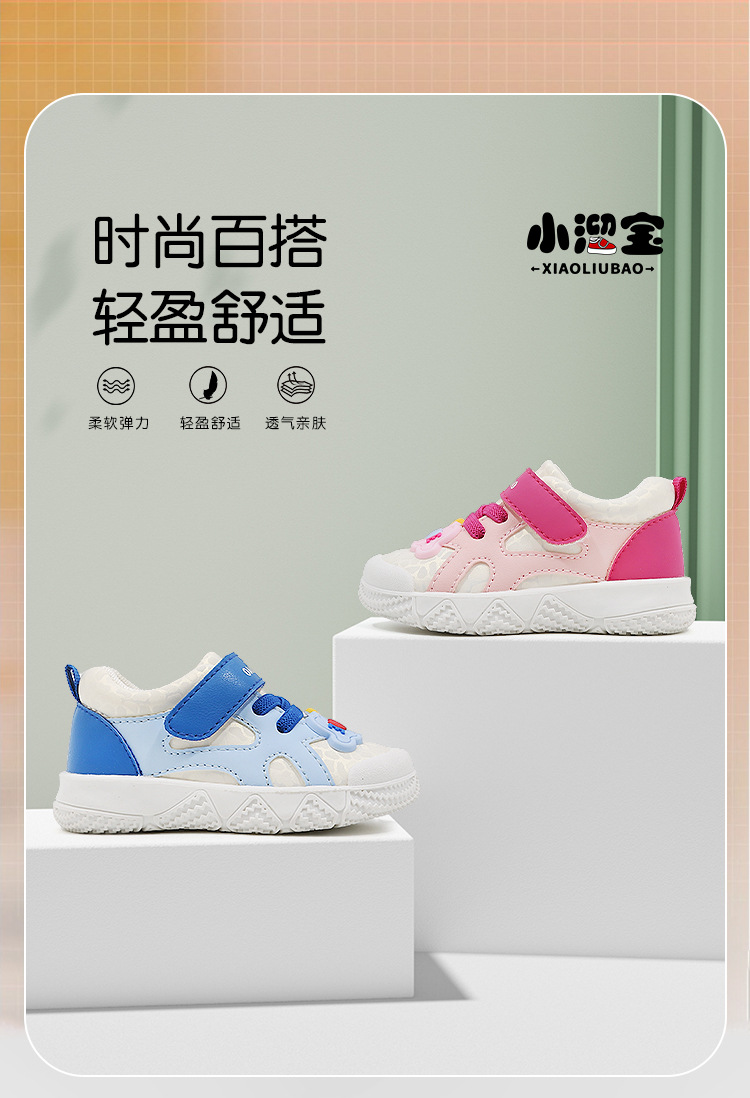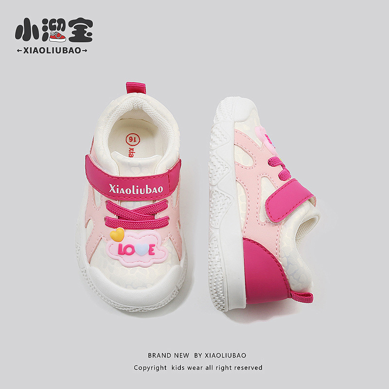 Xiao Liu Bao Spring and Autumn 1-3 Years Infant Breathable White Shoes Magic Closure Baby Learning to Walk Shoes Soft Bottom Anti-skid Boys and Girls Shoes