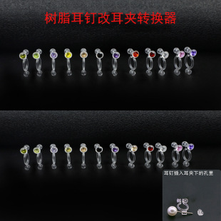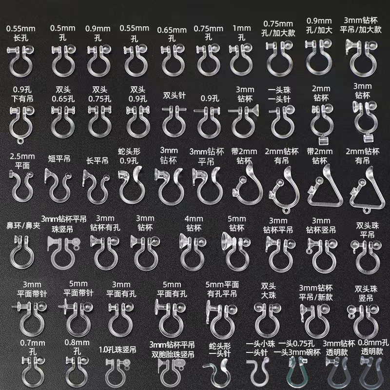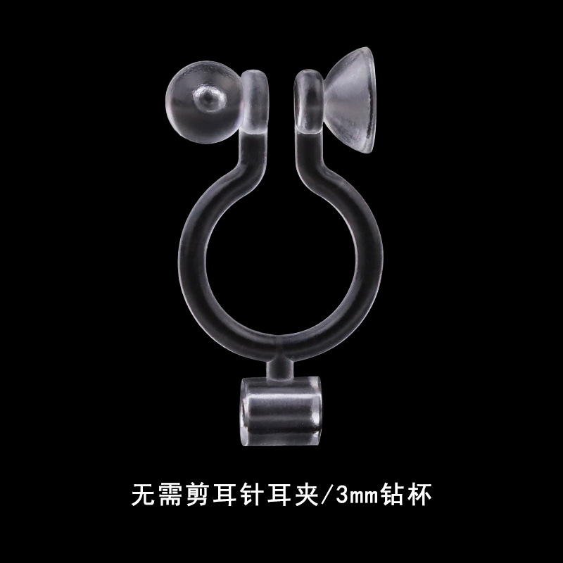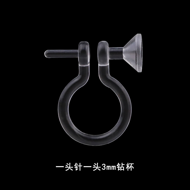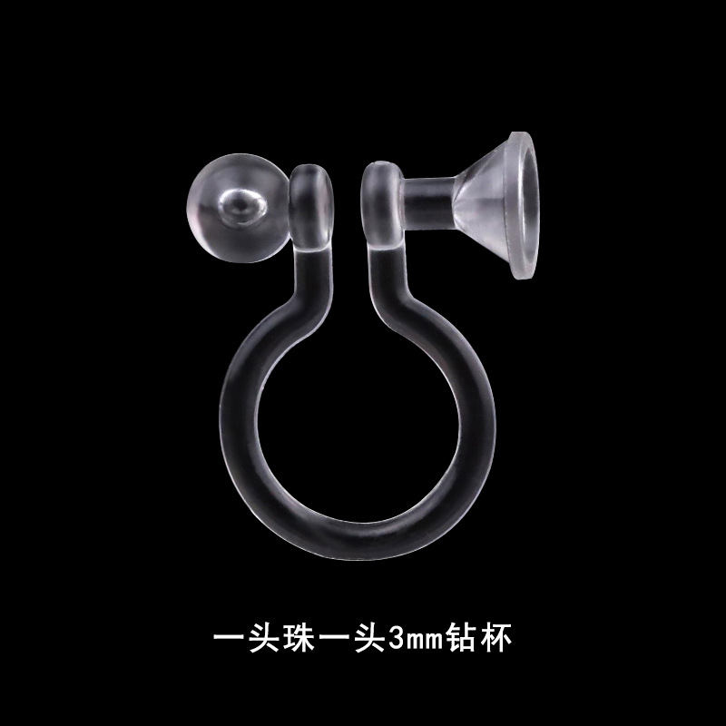 32# one bead vertical hanging one 3mm drill cup flat hanging resin ear clip/transparent