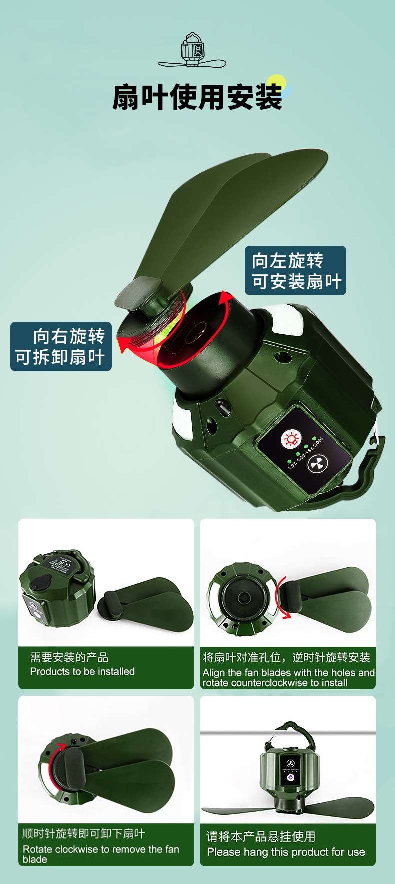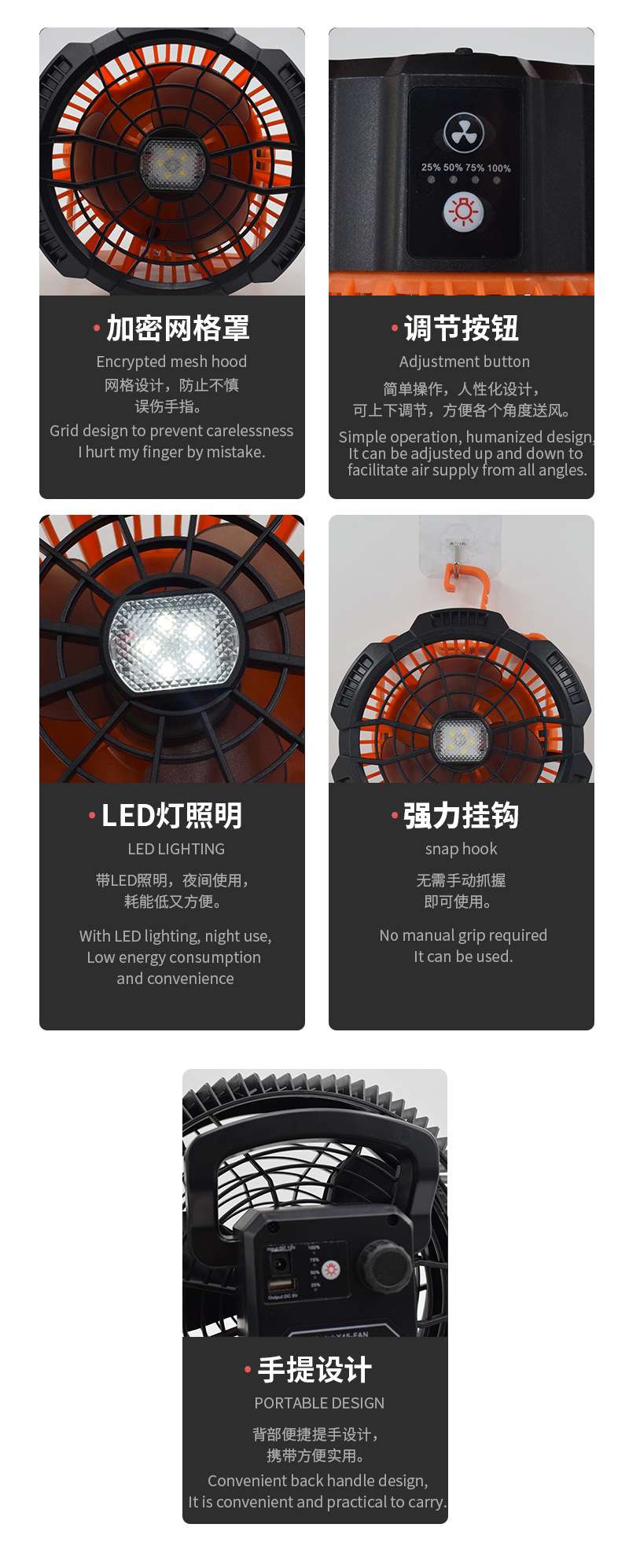 cross-border e-commerce hot-selling product: camping multi-function fan, outdoor fan, usb rechargeable fan 中文版