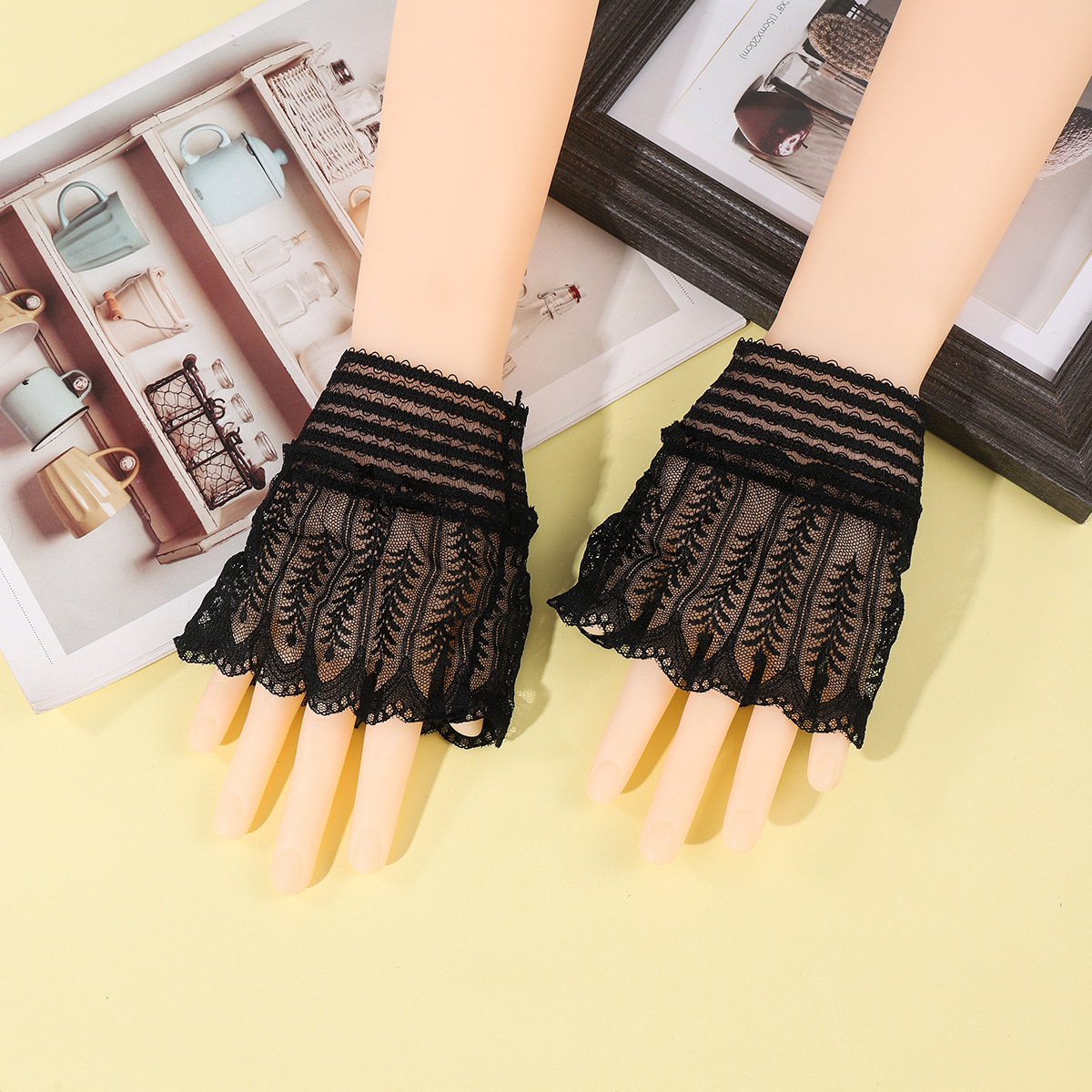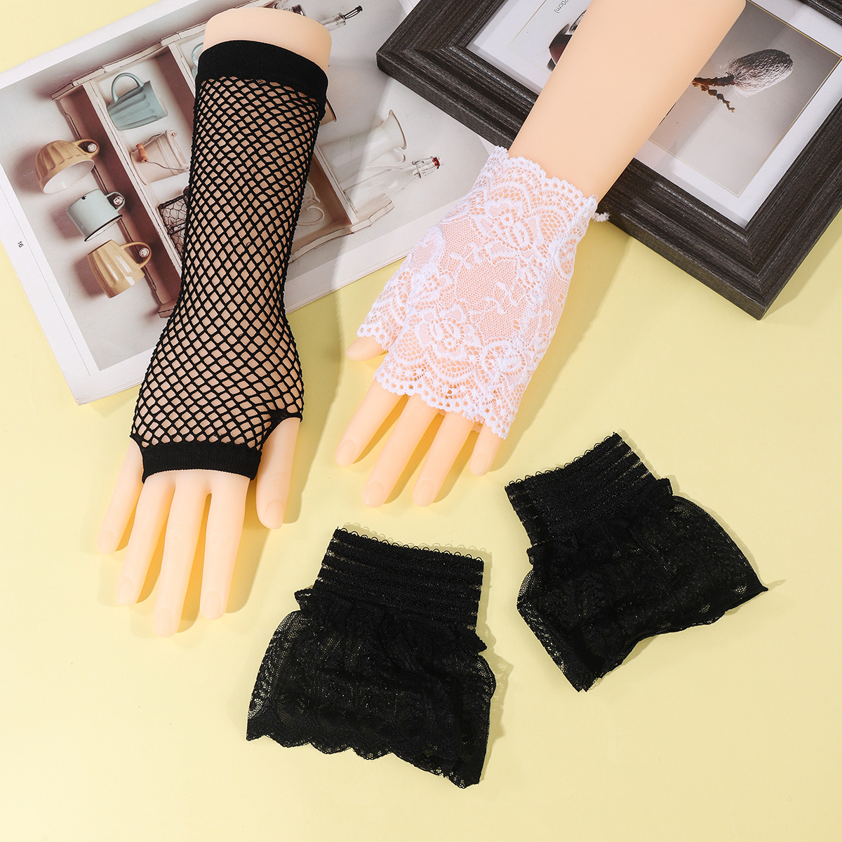 lace gloves women's half finger fingerless open finger short sailor dance driving sun protection uv protection scar cover gloves