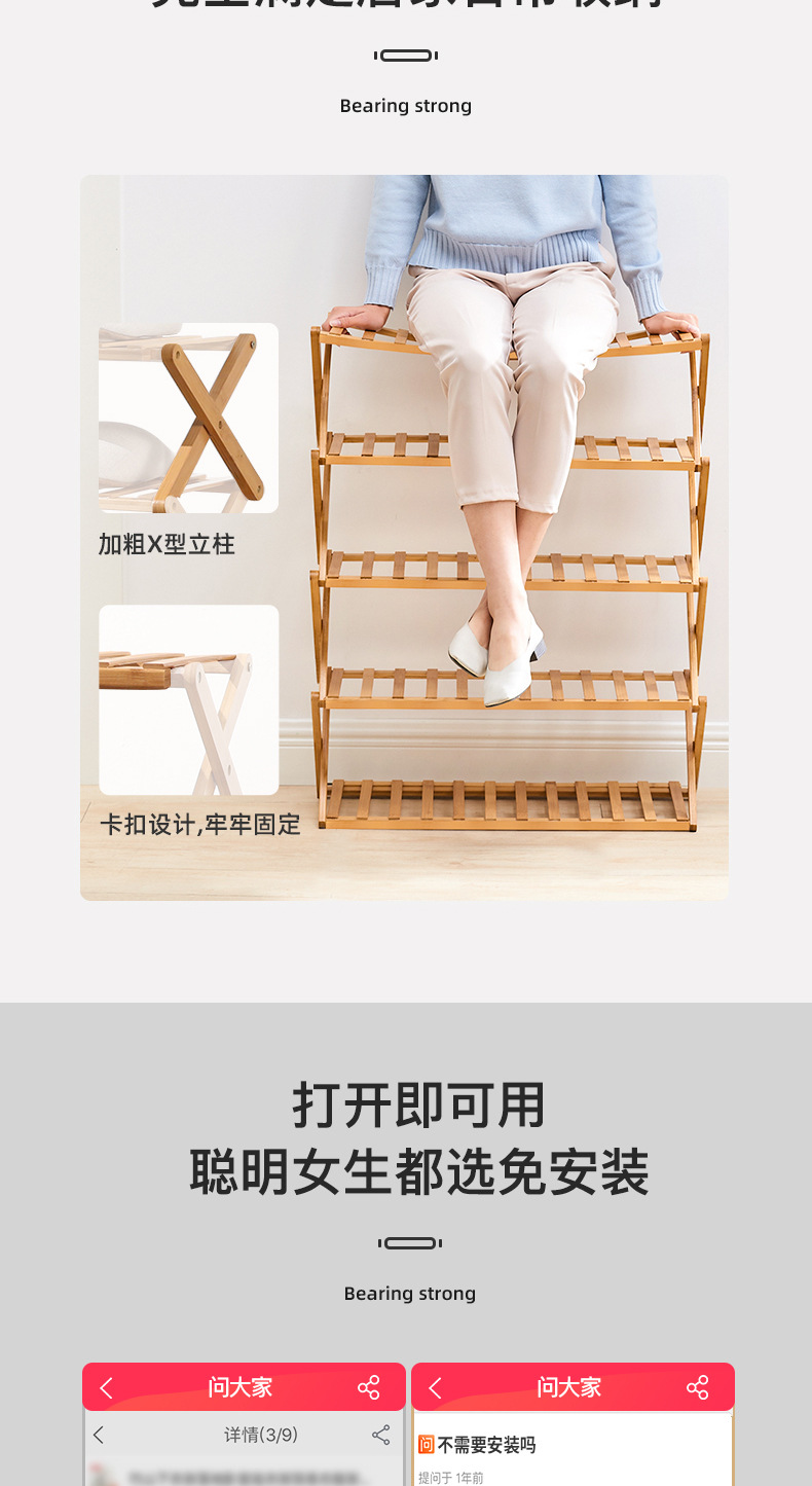 [installation-free + folding] wood color six layers 50cm