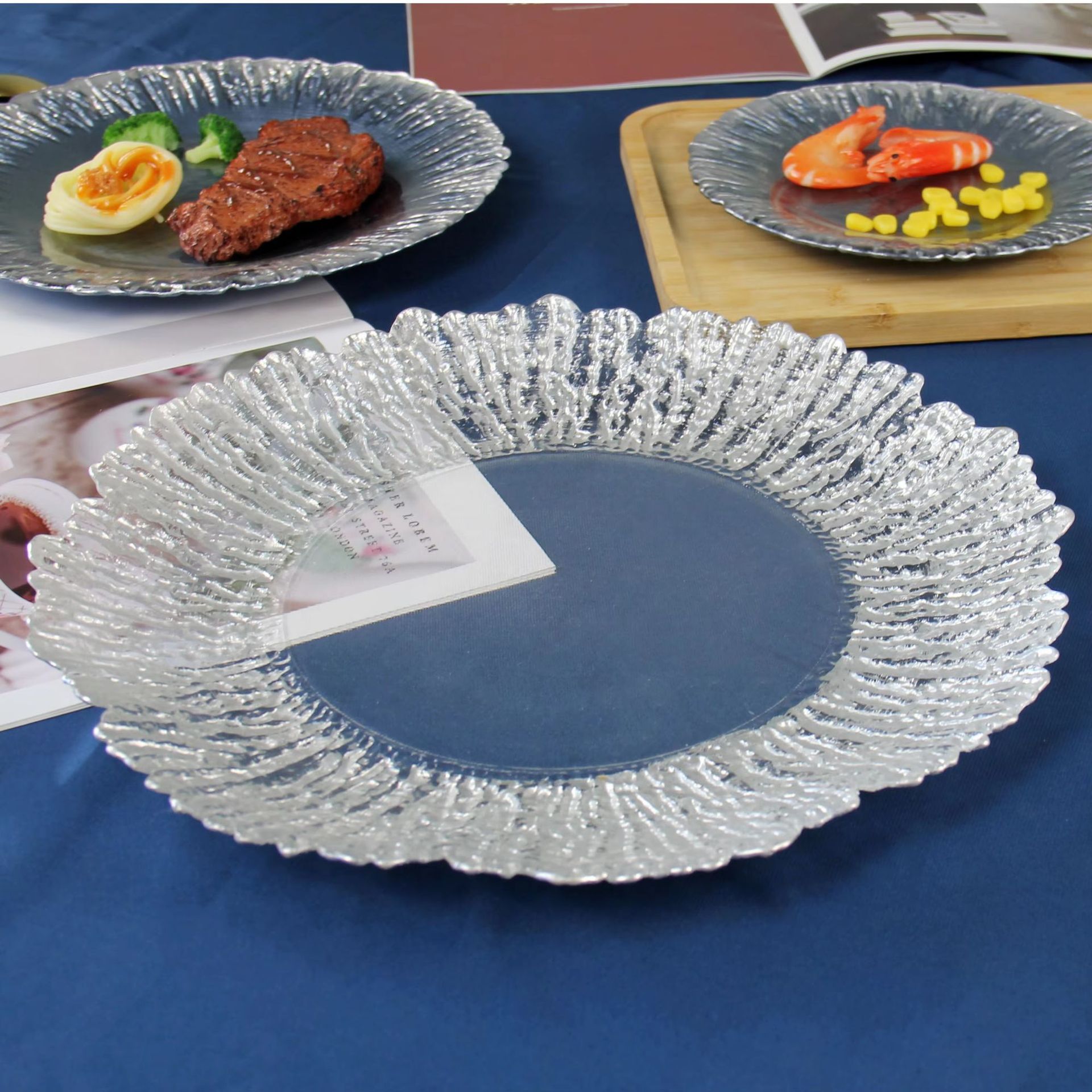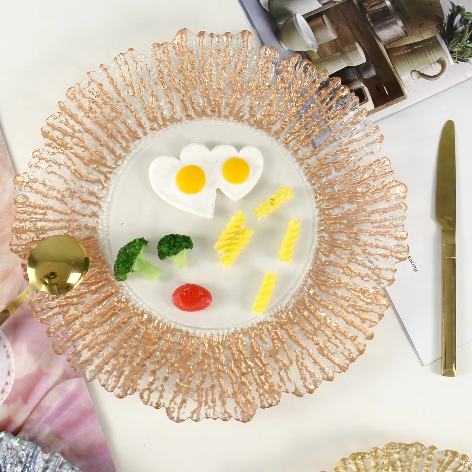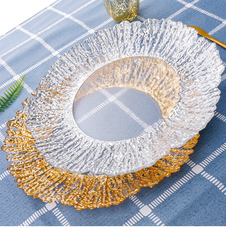 round affordable luxury style glass plate household irregular western pallet sunflower plate cutlery 中文版
