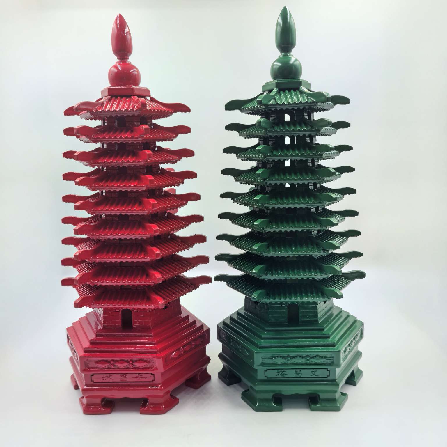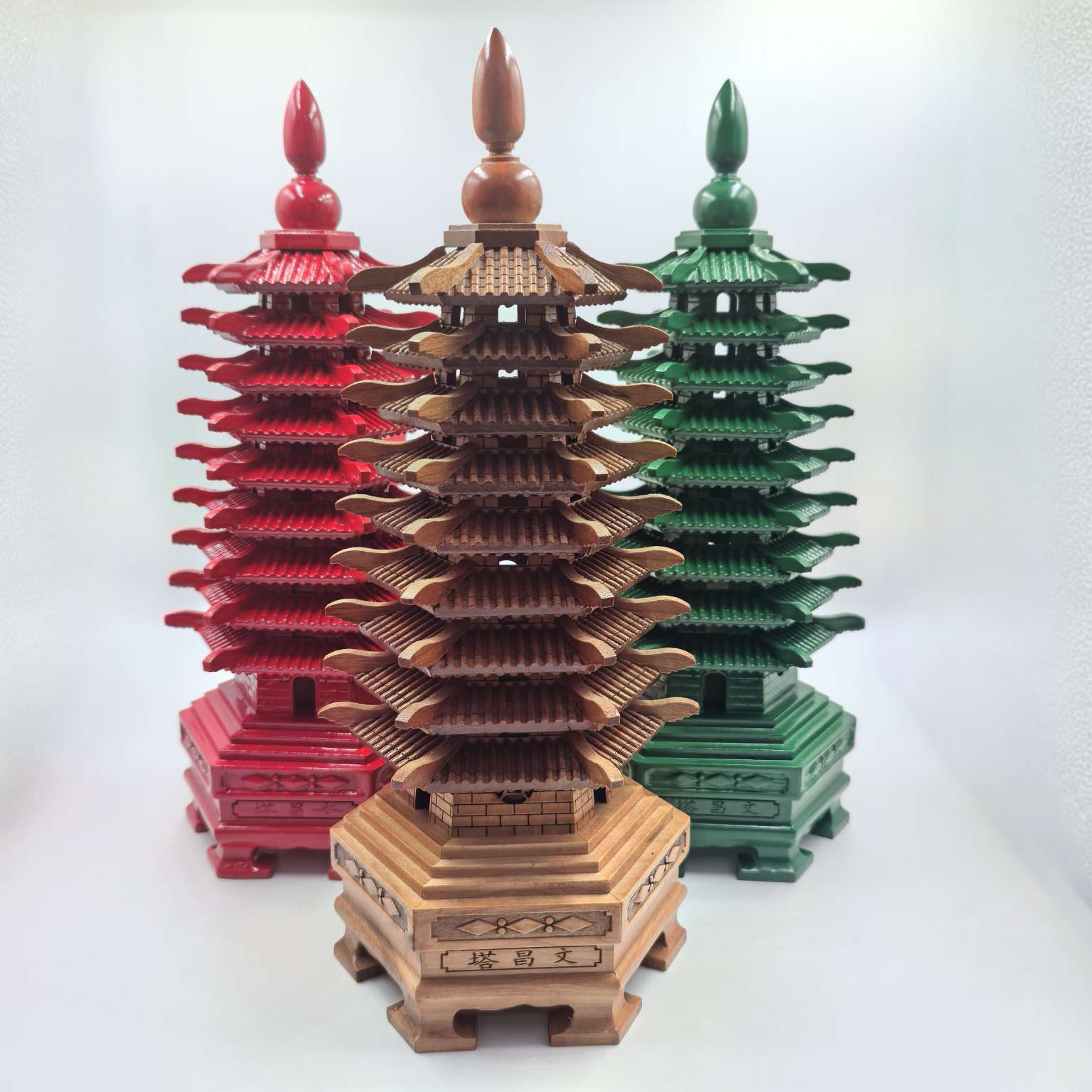 28cm 9 layers of green peach wood wenchang tower