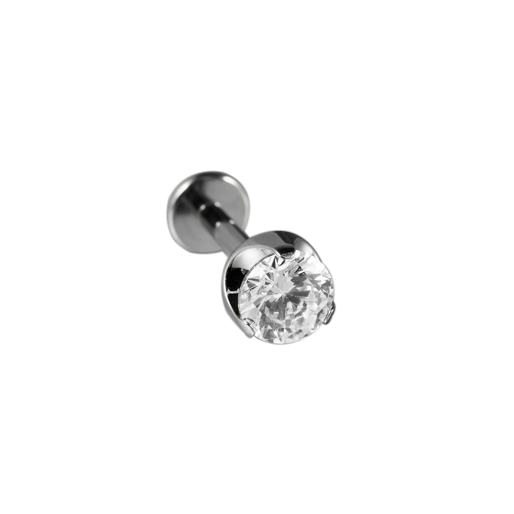 .Name: G23 Cross-border Titanium Claw Round Zircon Inner Thread Ear Bone Pendant Elegant Small Cat T-Shaped Flat Bottom Perforated Lips Piercing Lips Ring