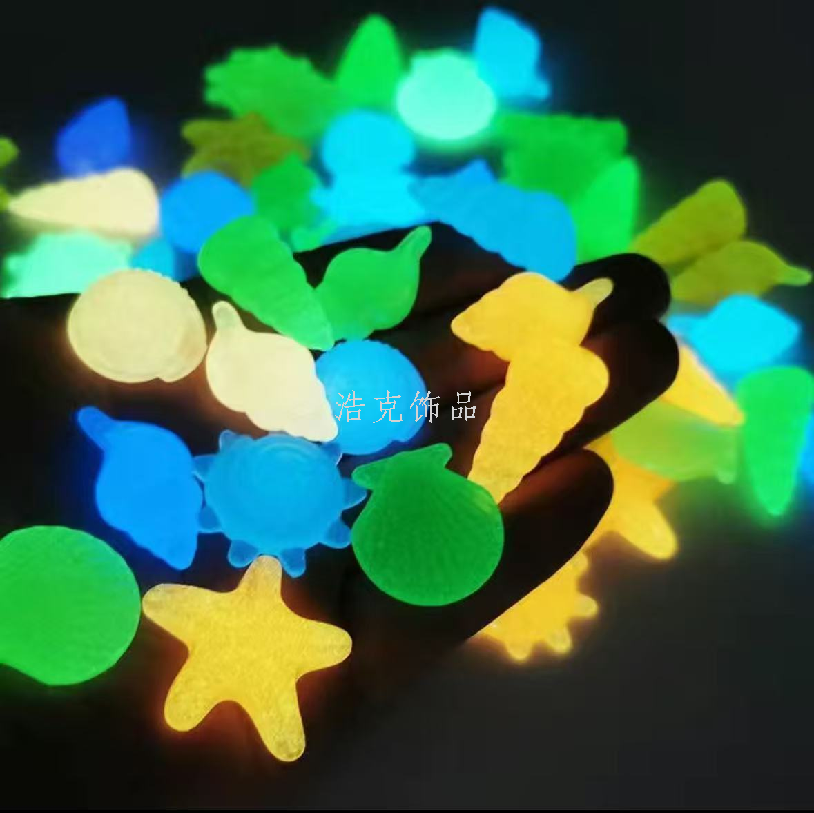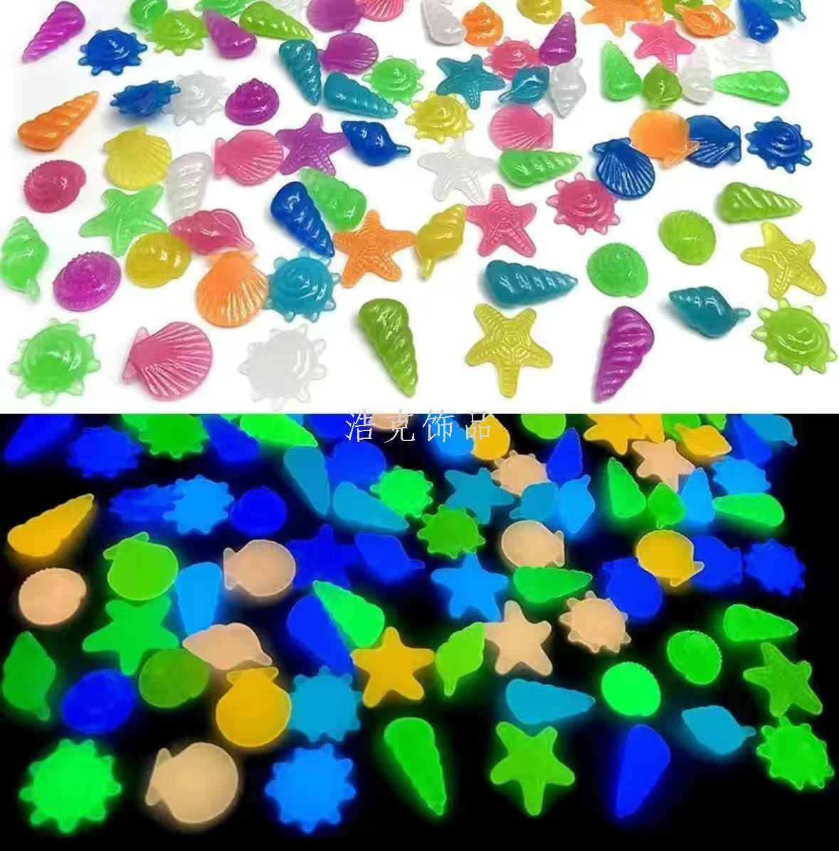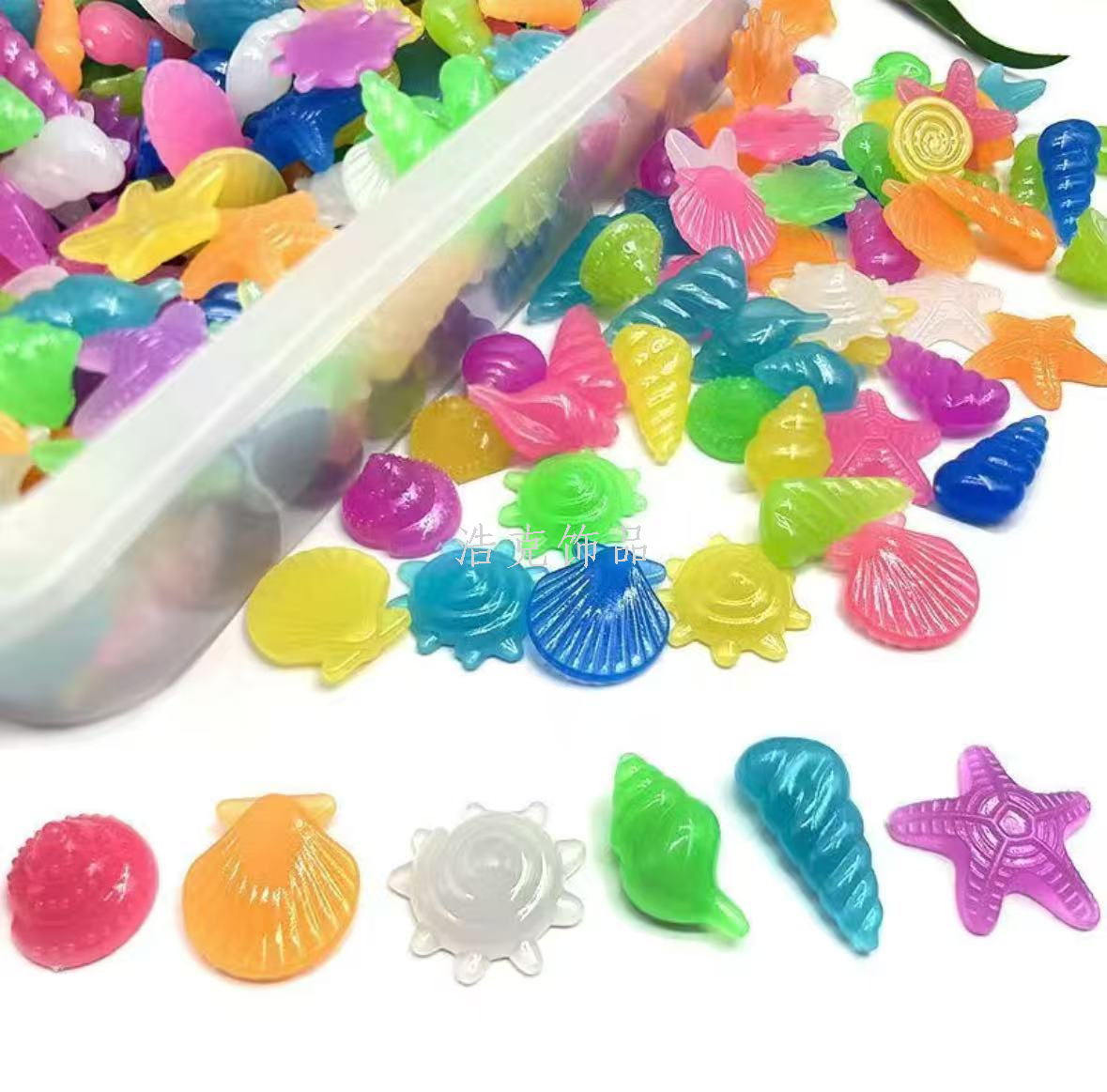 underwater world luminous children's gem aquarium fish tank landscape luminous shell starfish conch colorful fluorescent stone 中文版