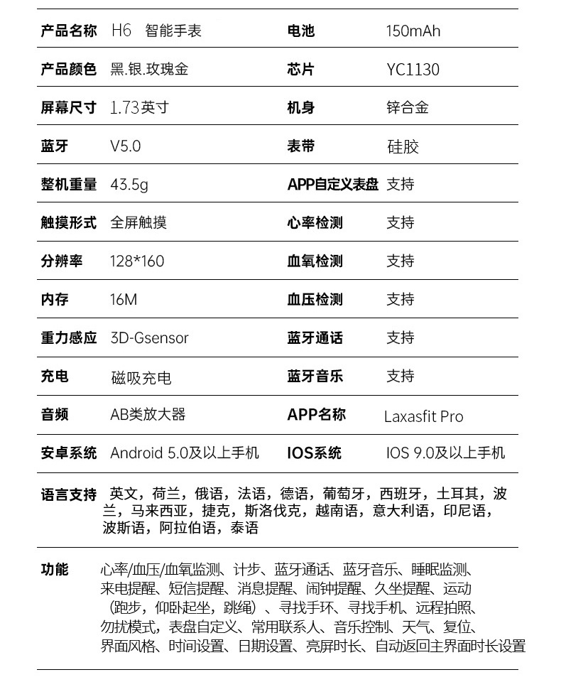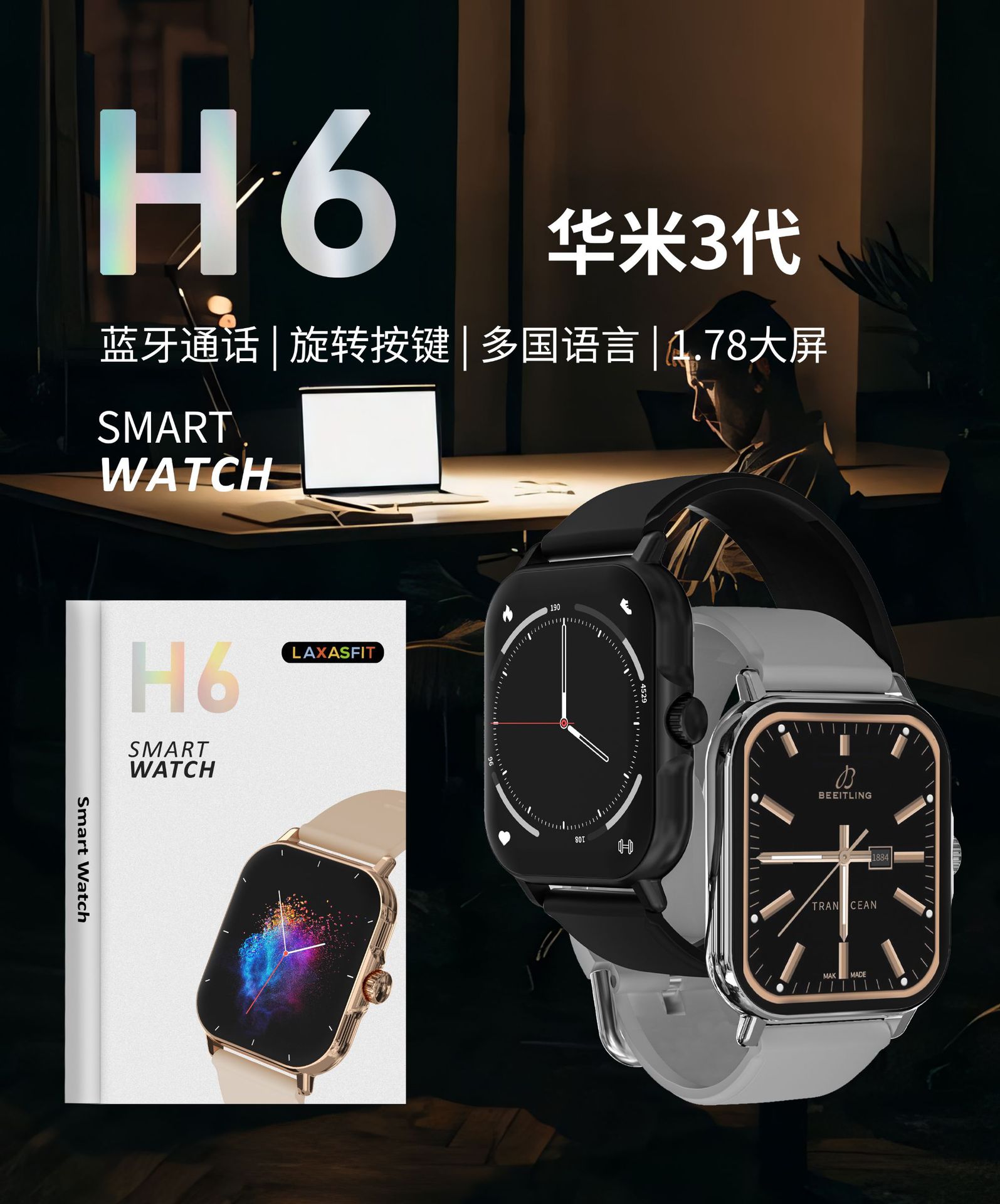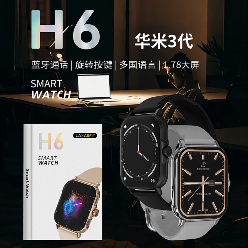 cross-border new arrival h6 smart watch 1.73-inch touch screen bluetooth calling smart watch huami foreign trade