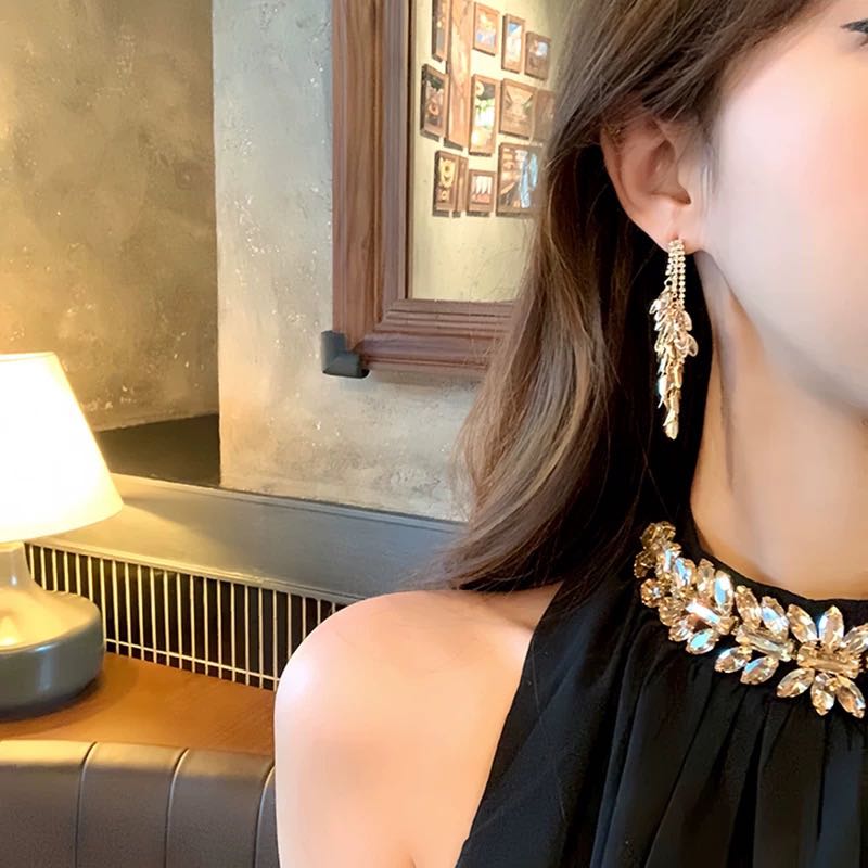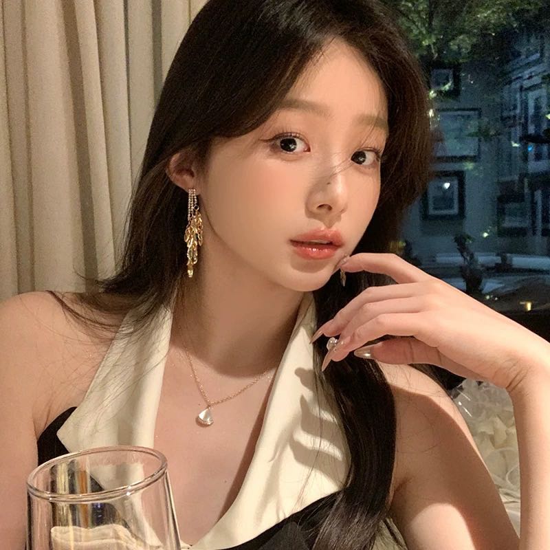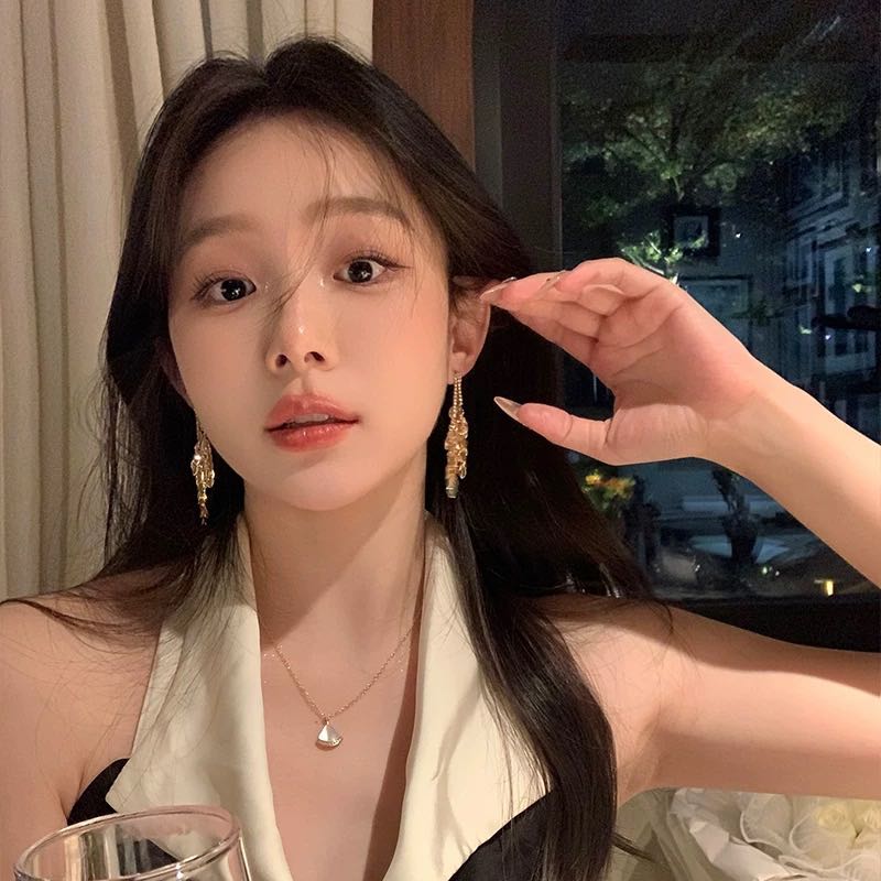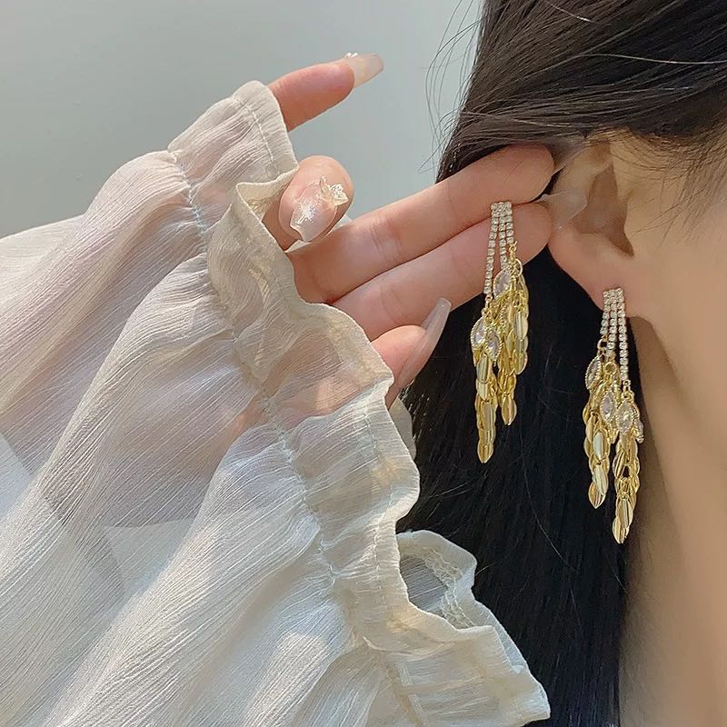 french banquet retro high-grade niche temperament long gold and silver color tassel earrings 中文版