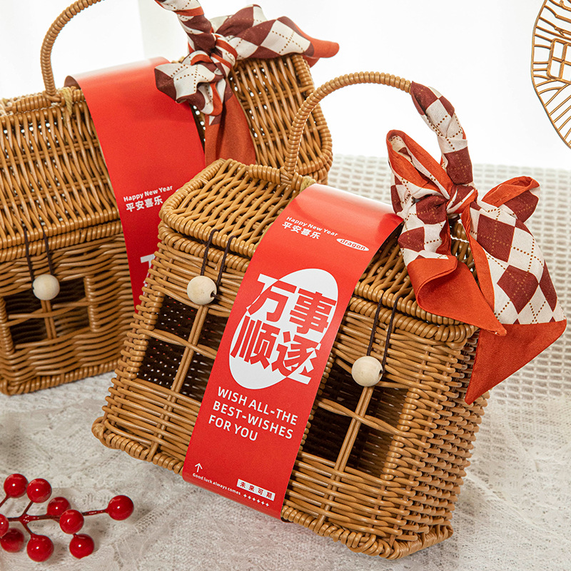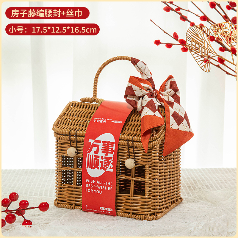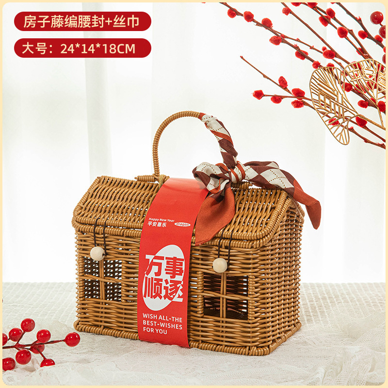 beige house knitted basket (large empty basket)