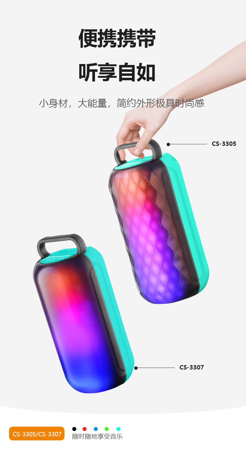 Bluetooth function, MIC input rainbow light, 5 buttons