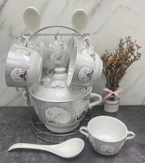 Ceramic Soup Pot, Ceramic Bowl, Ceramic Spoon, Soup Pot Set, Large Ceramic Spoon, Gift Soup Pot, Colorful Box Packaging, Ceramic Bowl
