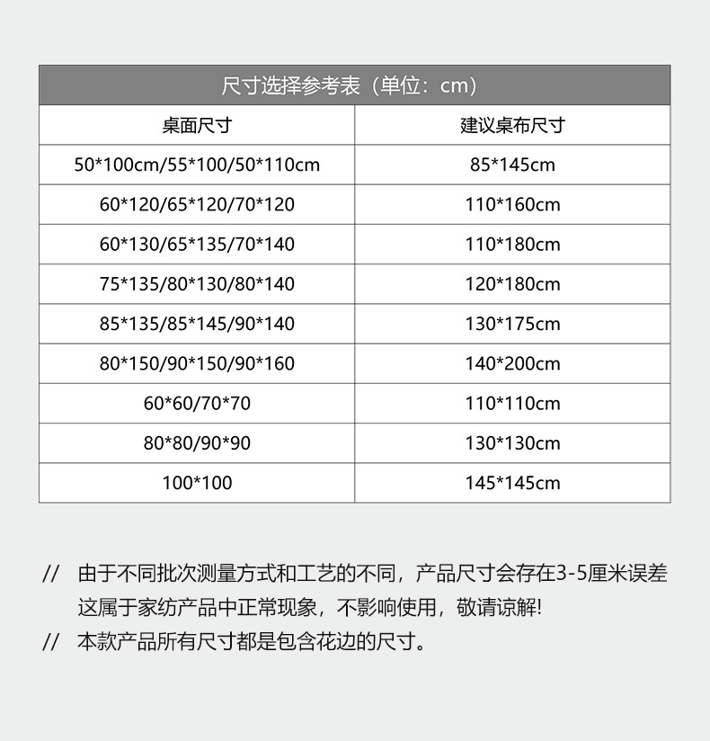 | 150 * 220cm (suitable for 90 * 160cm long table) | ¥124.0 | 200 piece available |