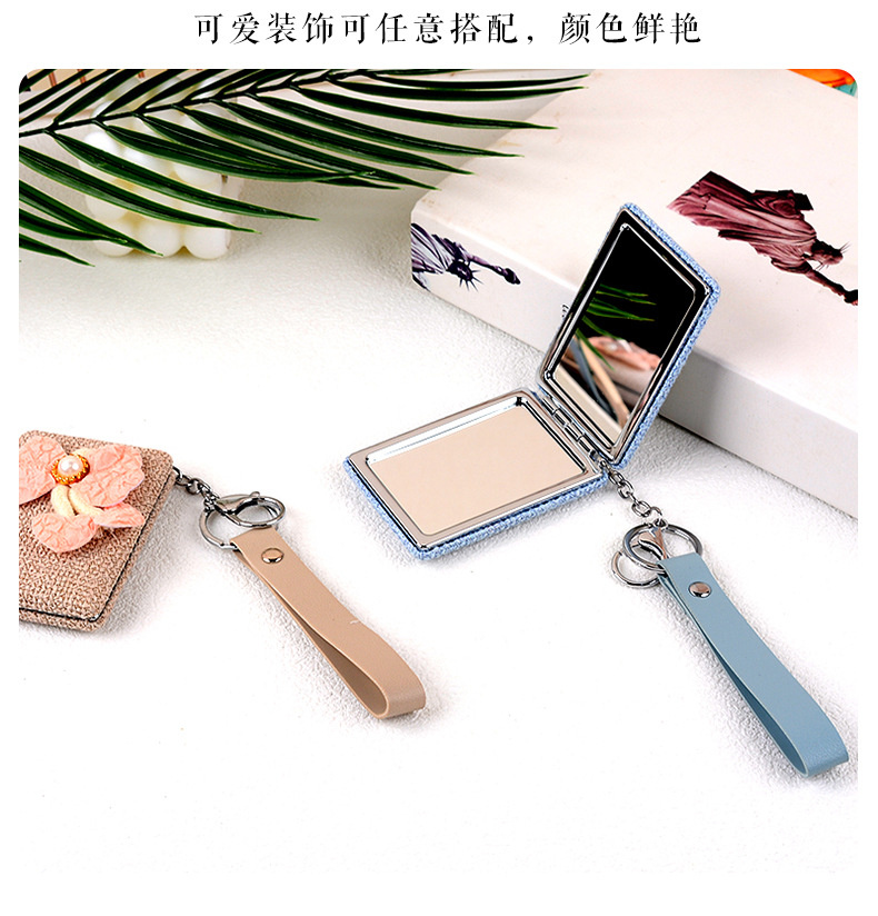 fabric keychain square small mirror cute girl portable foldable portable high sense small gift 中文版