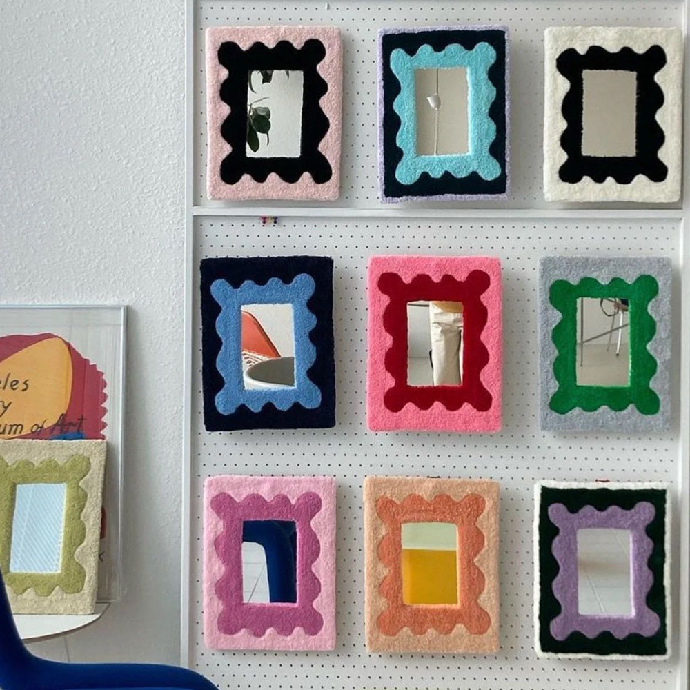 bear tufted desktop makeup mirror camouflage towel embroidery wall decoration mirror ins style korean style wool 中文版