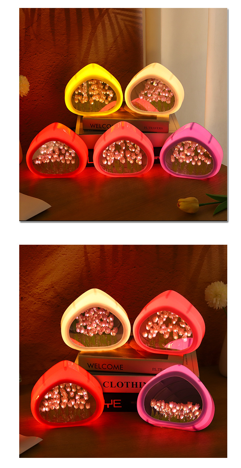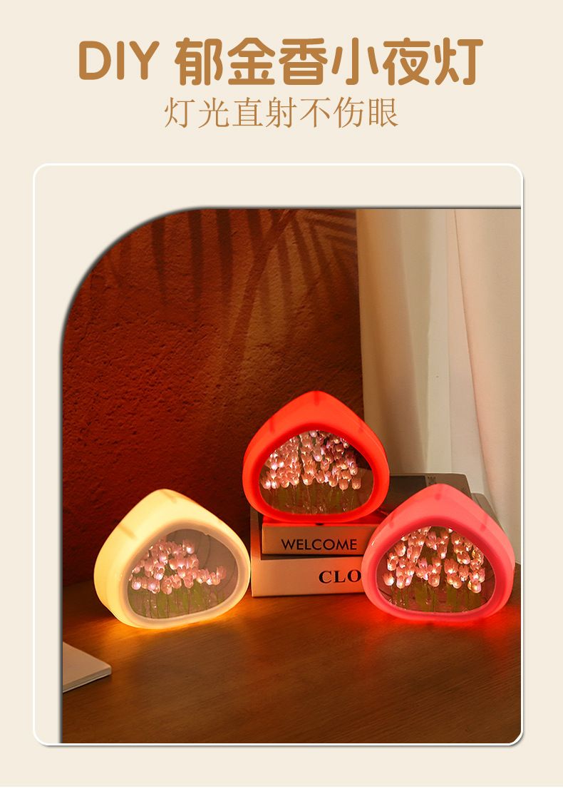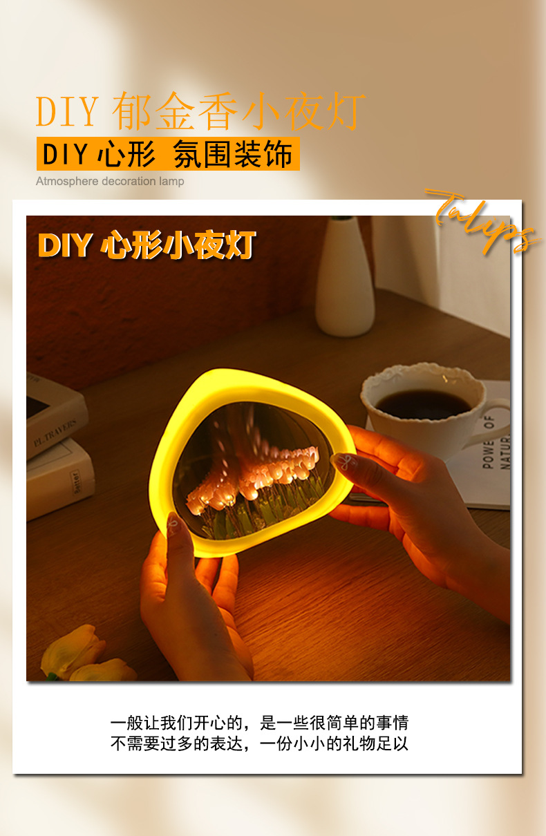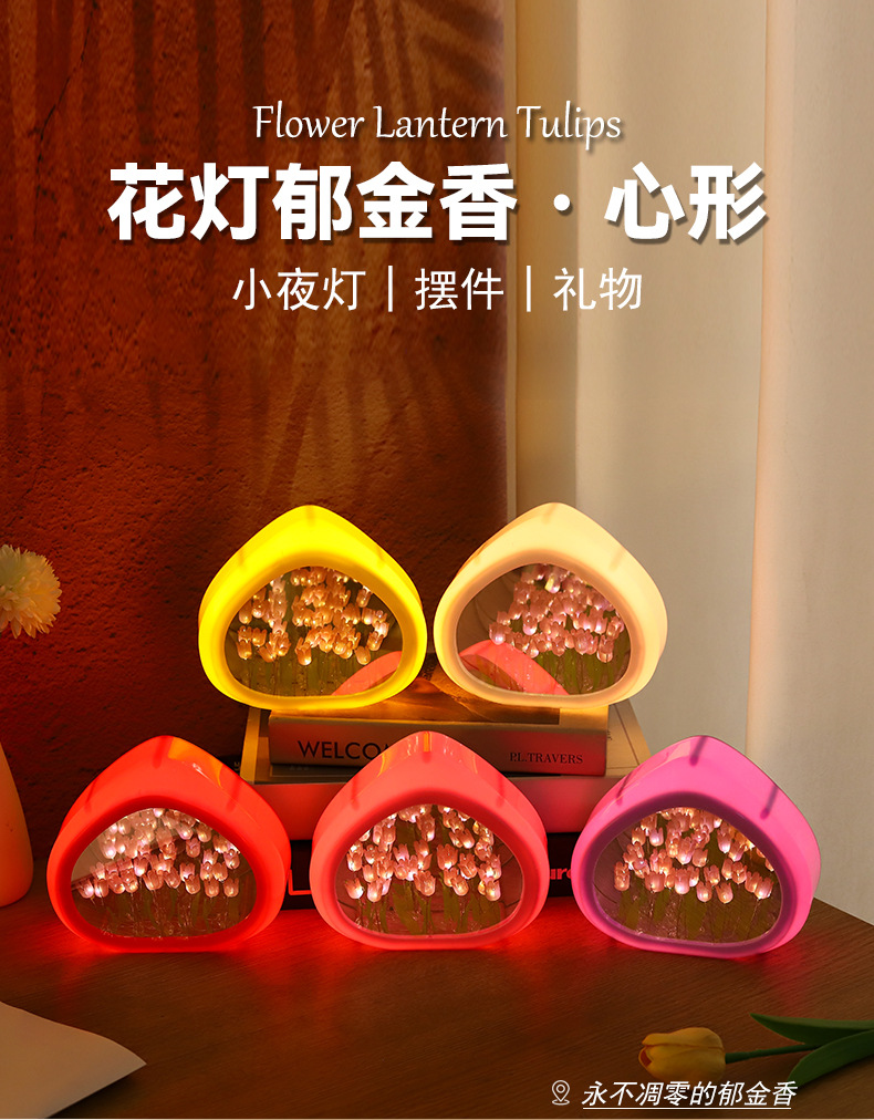 tulip small night lamp diy handmade love heart small night lamp ambience light valentine's day gift girls birthday gifts 中文版