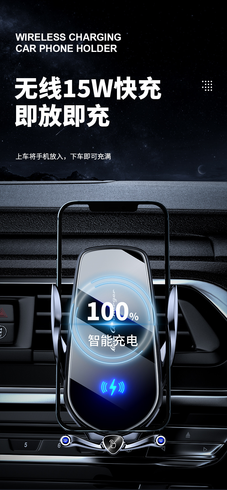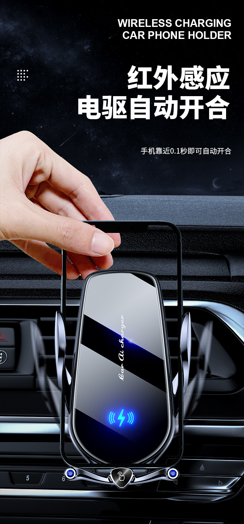 magical clip car wireless fast charging navigation bracket mobile phone holder automatic opening and closing infrared induction power-off pick-up machine
