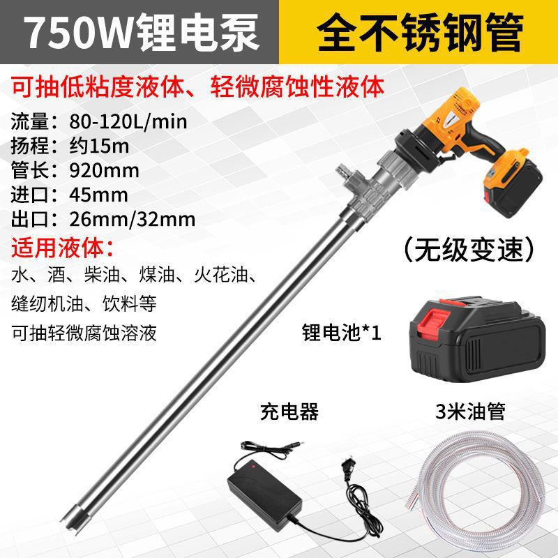 lithium battery pump +3 m oil pipe + full stainless steel pipe-one electricity and one charge