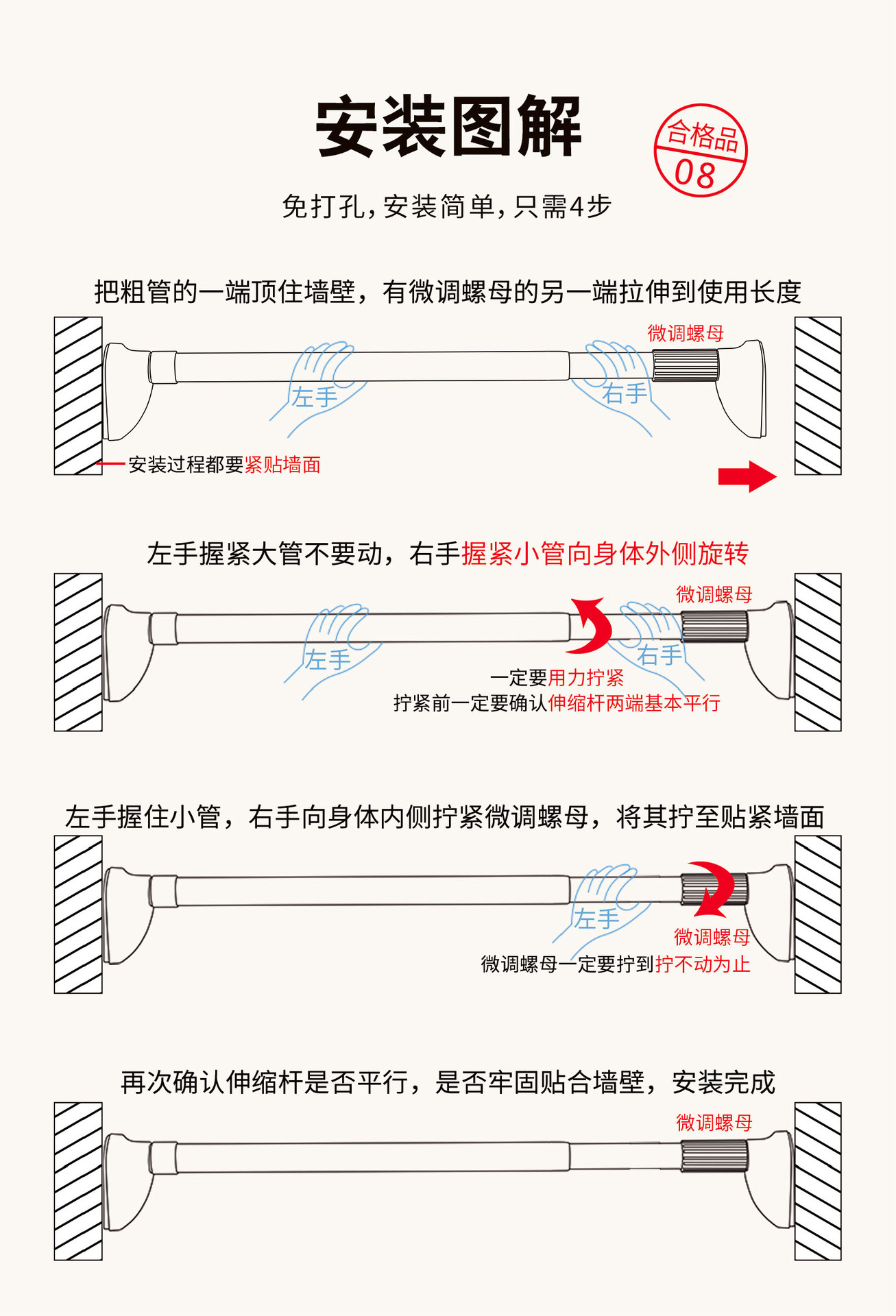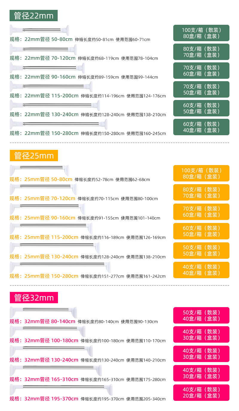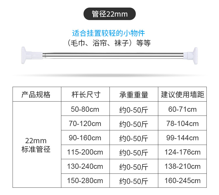 conventional 22mm pipe diameter 150-280cm