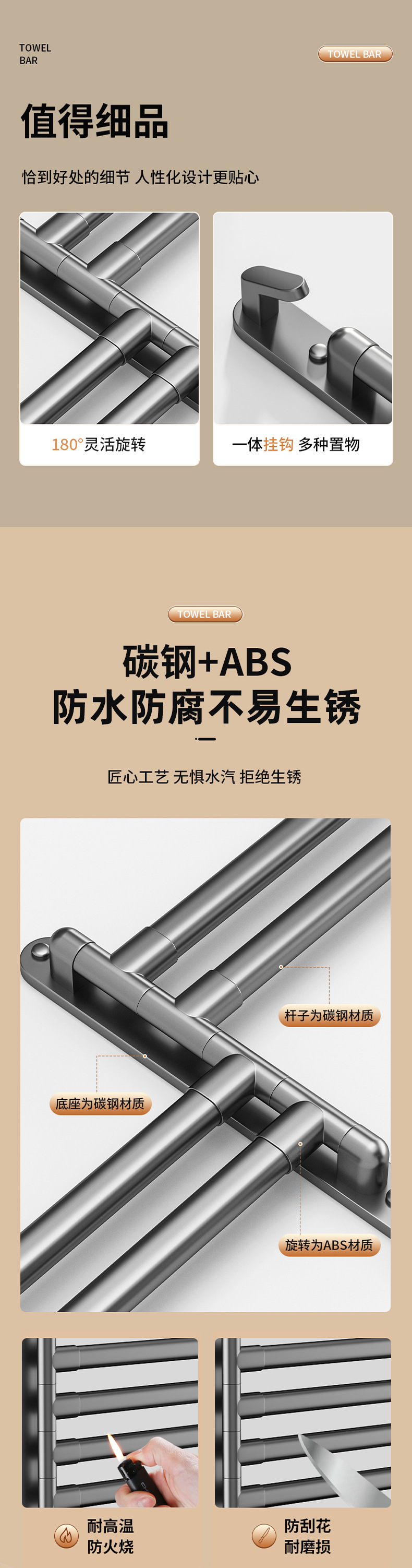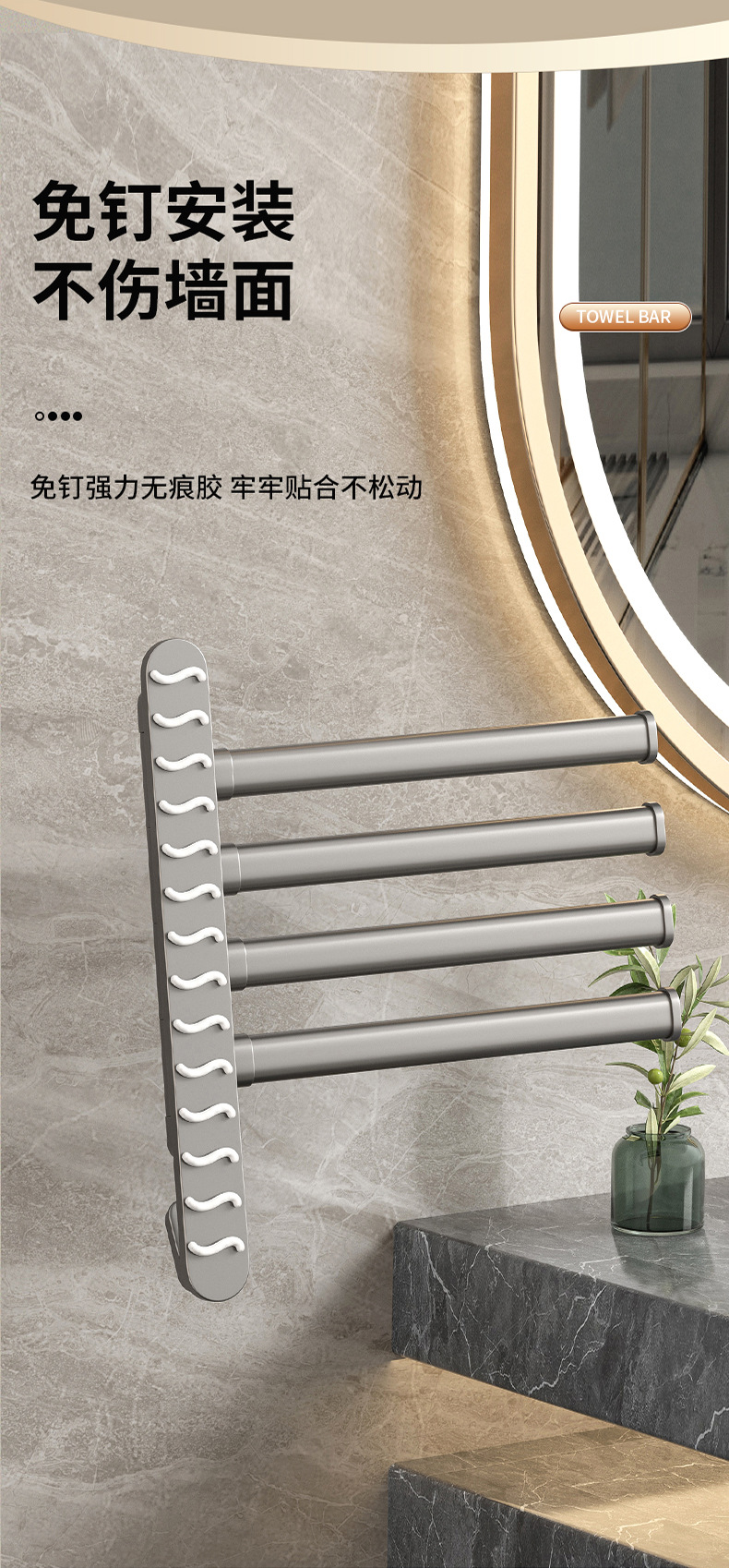 22cm rotating double-pole towel rack (black)