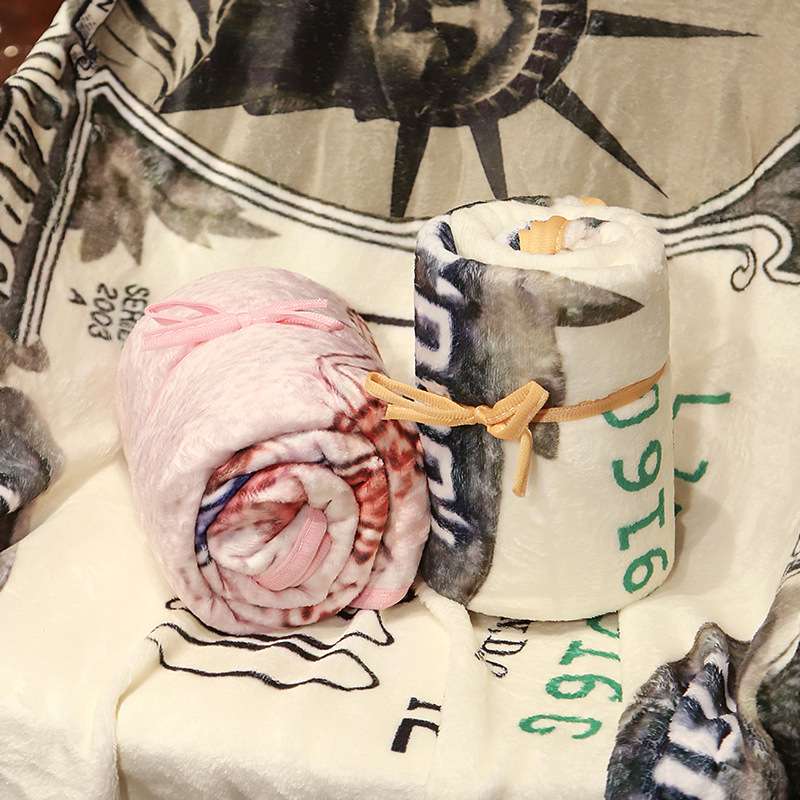 four seasons universal office nap blanket creative funny $sand carving bill blanket flannel air conditioning blanket 中文版