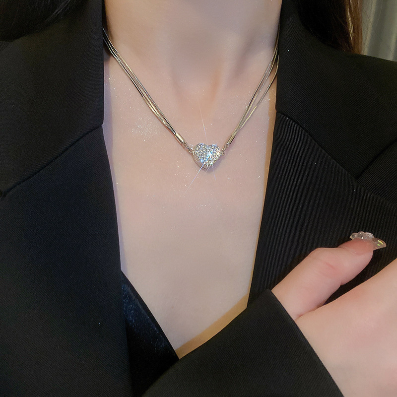 39# necklace-silver heart double layer