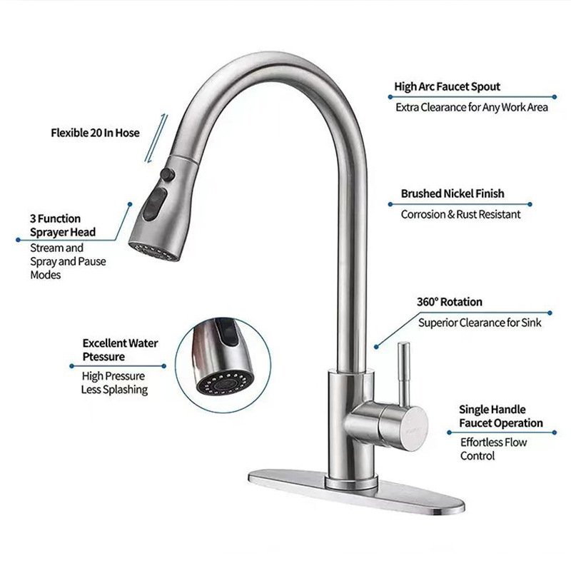 exclusive for cross-border wall-mounted rotating kitchen and bathroom sink faucet pull-out single cooling heater washing basin universal stainless steel