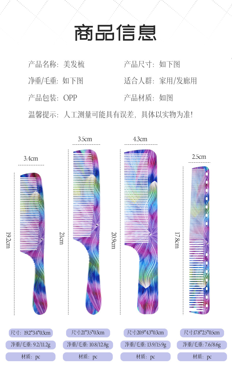 in stock barber shop style hairdressing comb hair stylist hair cut comb pointed tail pick hair comb flatten thin comb 中文版