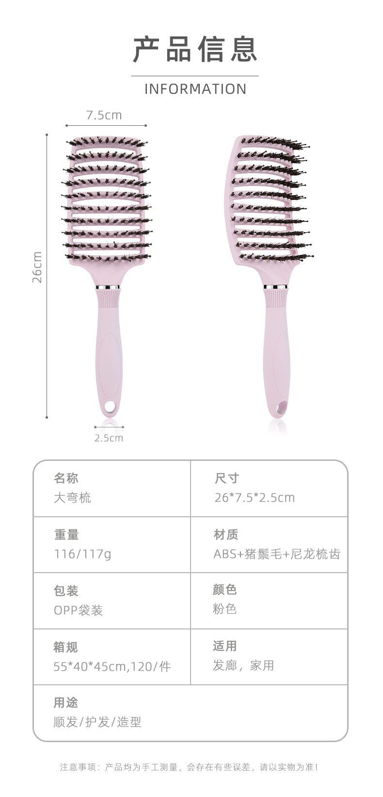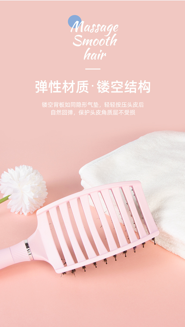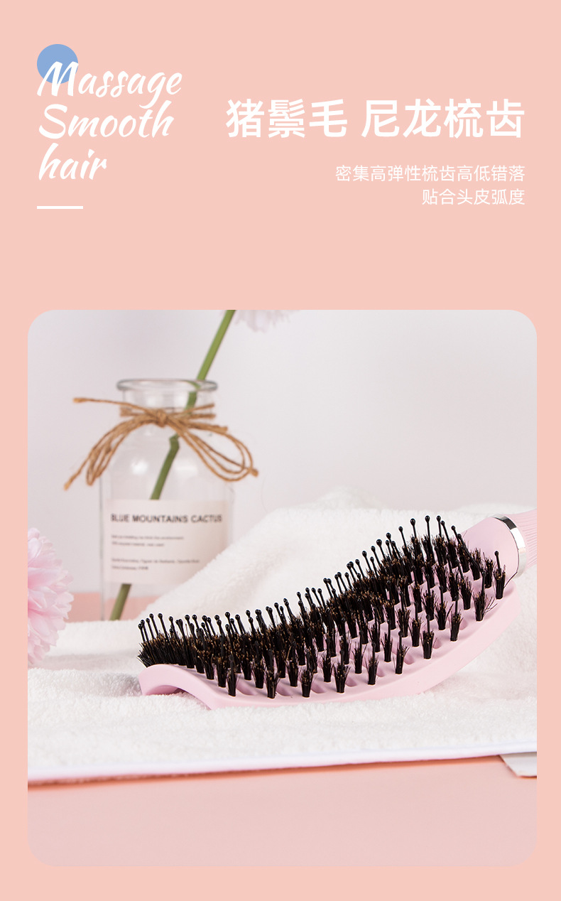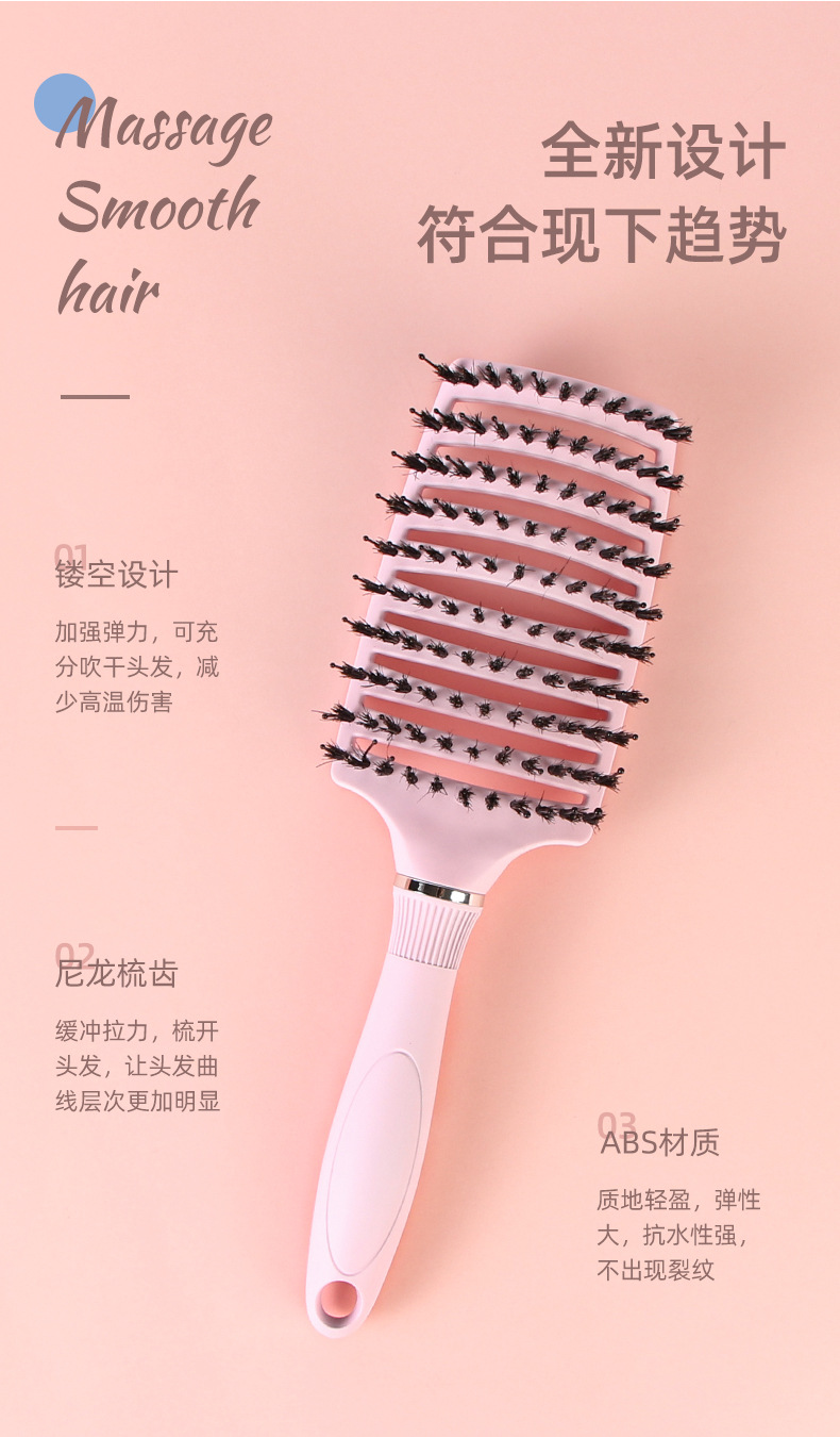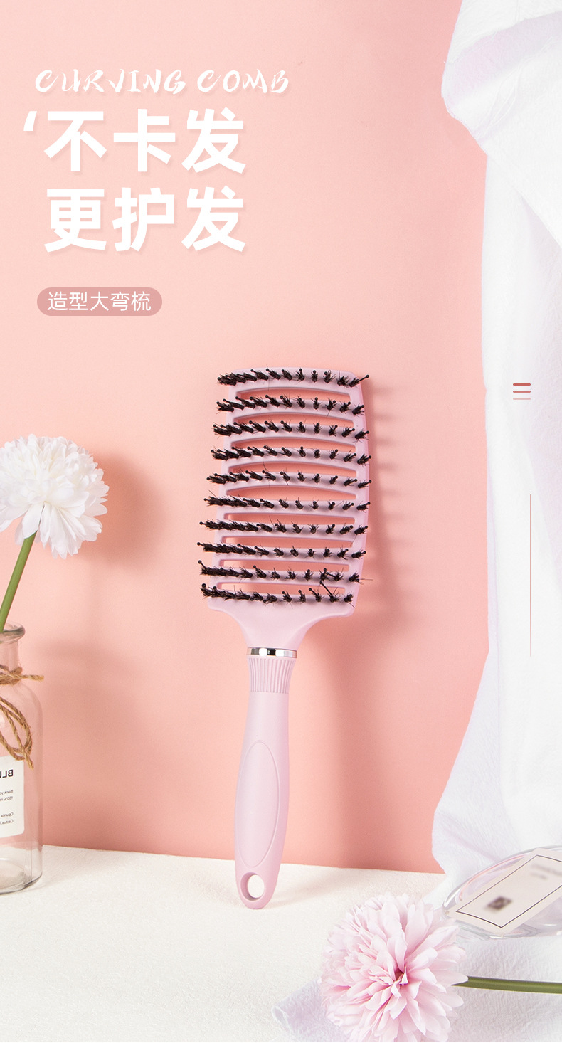 female straight hair arc blowing hair pig bristle big curved comb big vent comb blowing fluffy hair male styling comb blowing oil head hairstyle 中文版