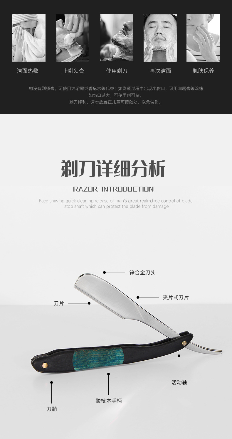 foreign trade new old-fashioned manual shaver men's face shaving eye-brow knife hair styling hair trimmer 中文版