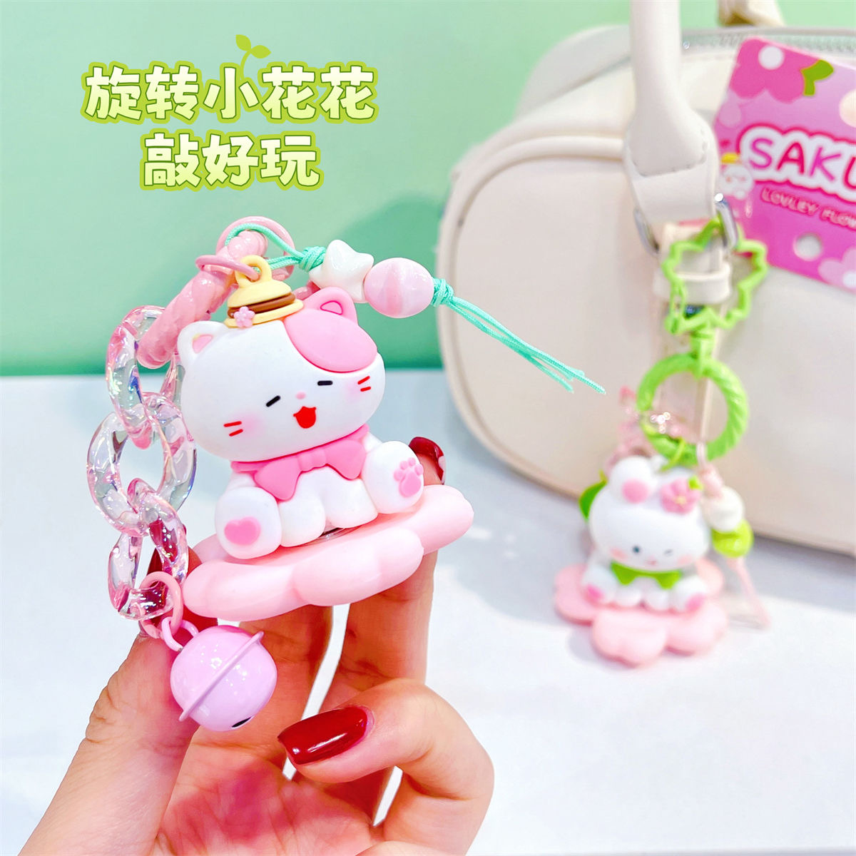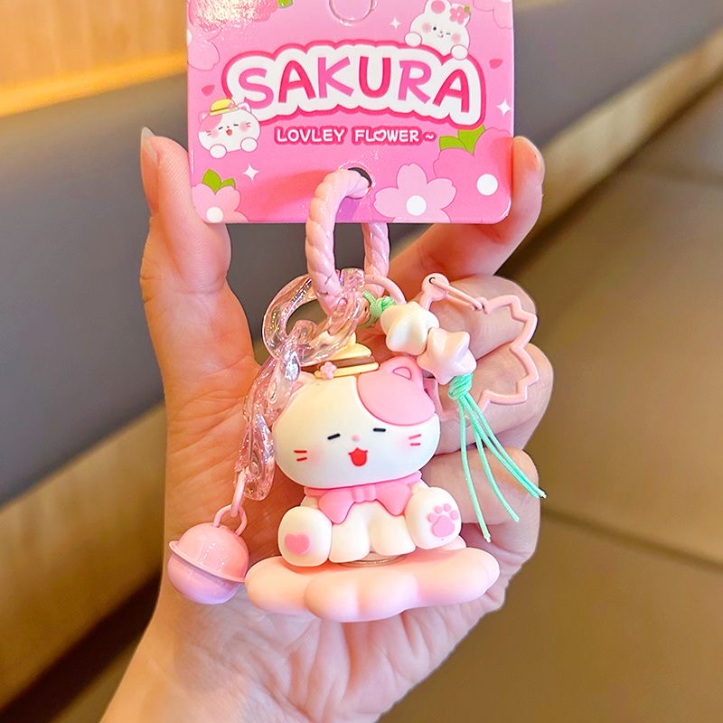 Cute Sakura-Shaped Rabbit Meow Fun Turn Doll Keychain Cartoon Key Chain Couple Girlfriends Bag Pendant Accessories 中文版