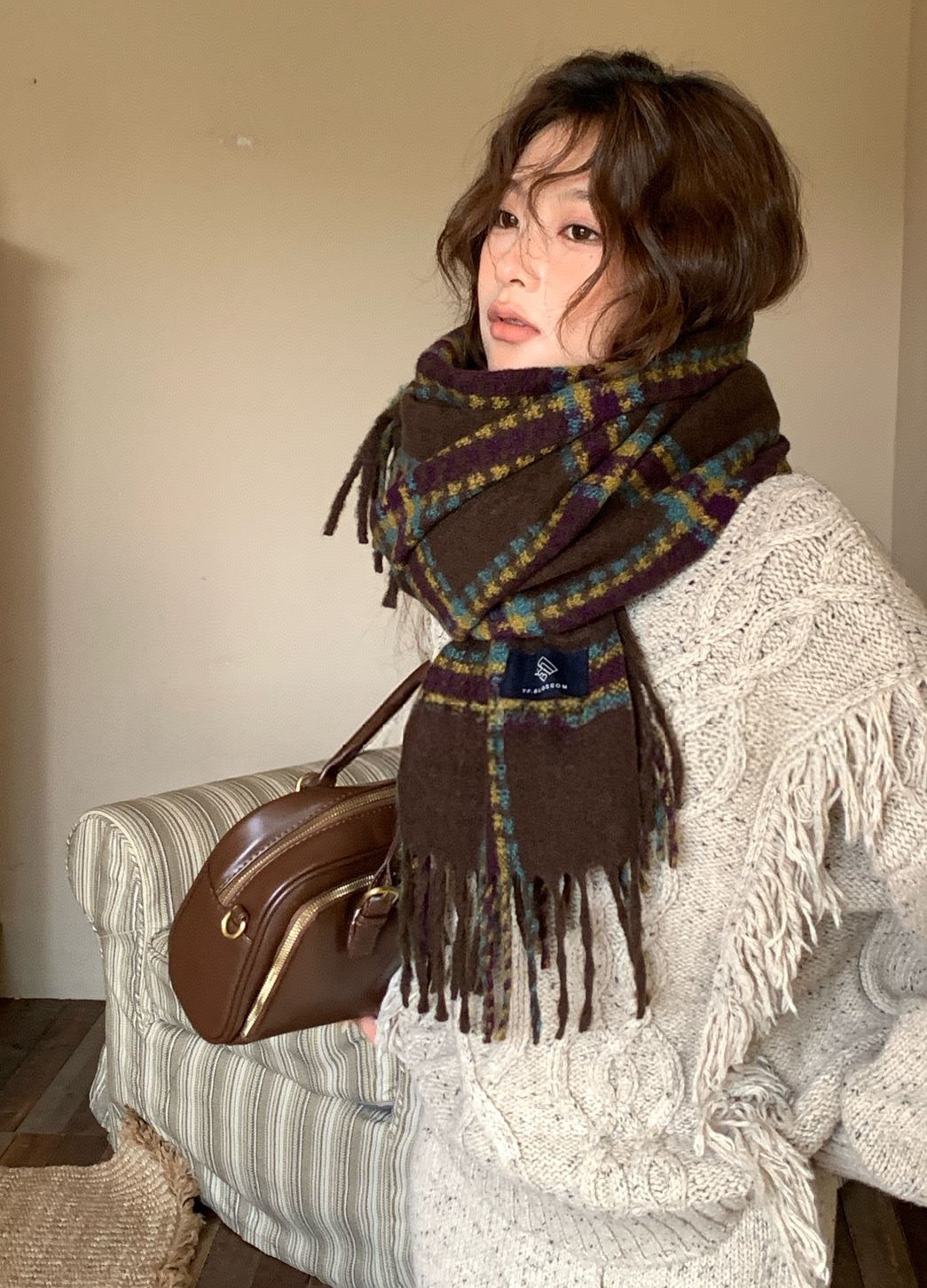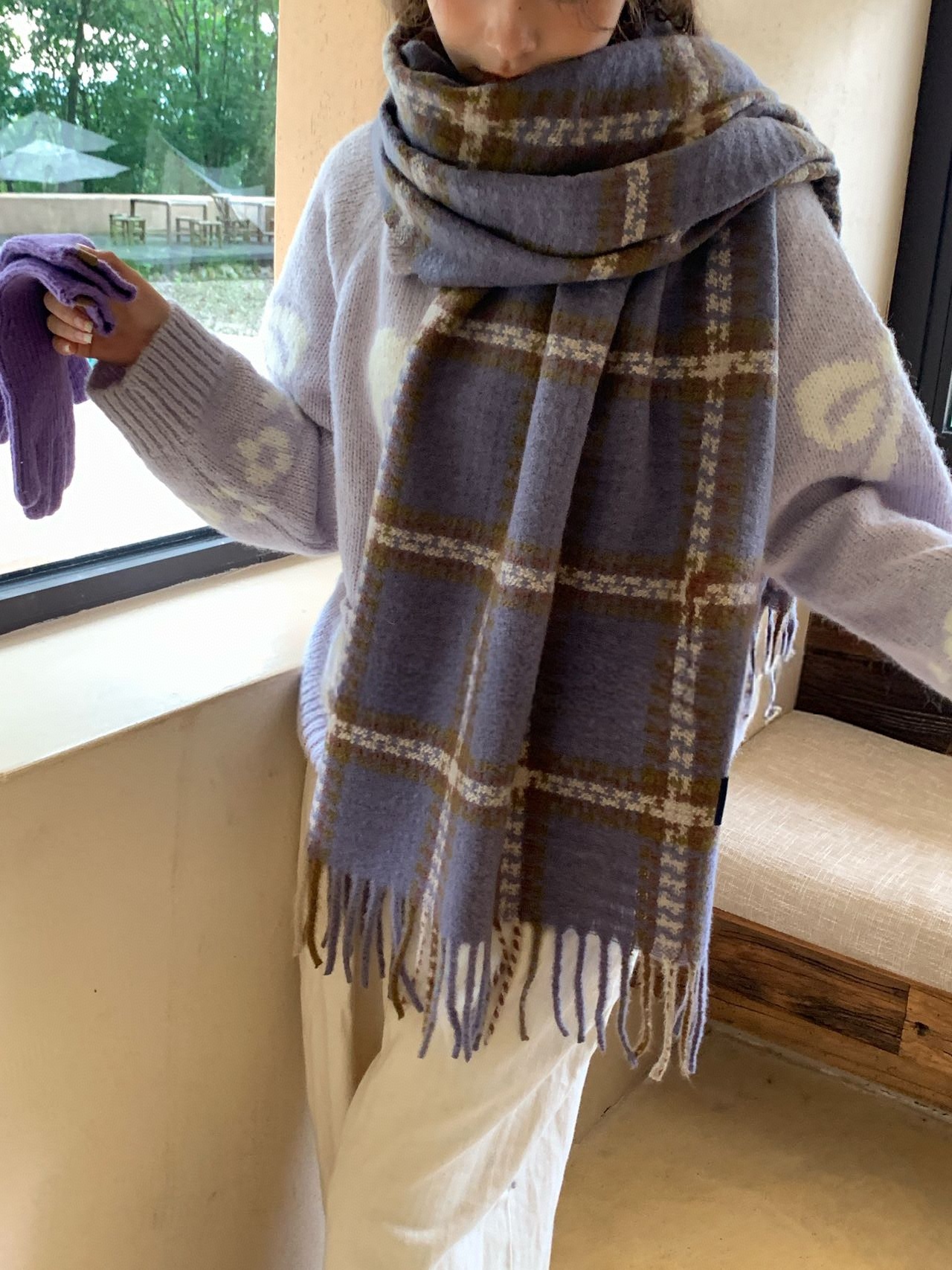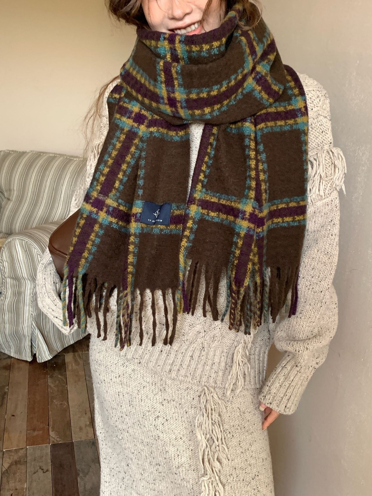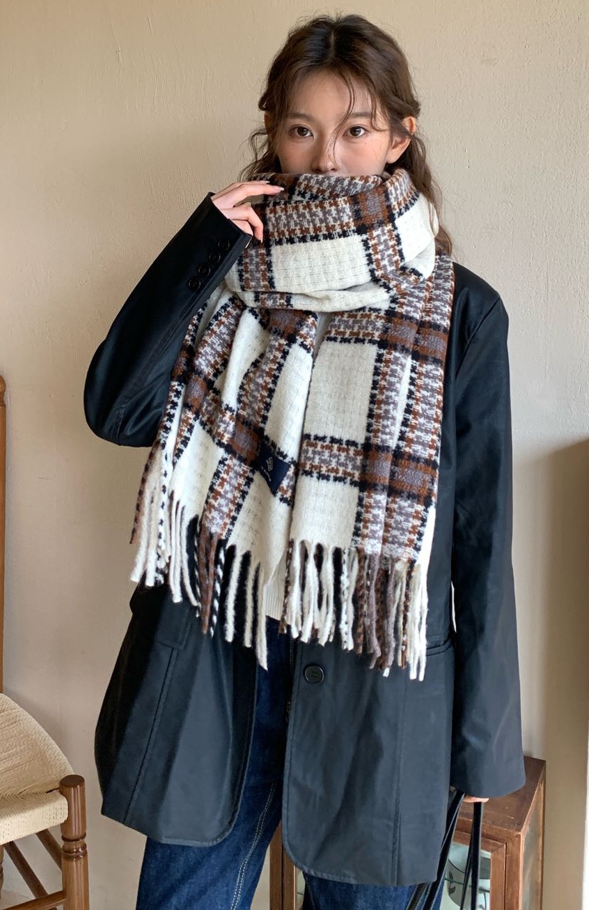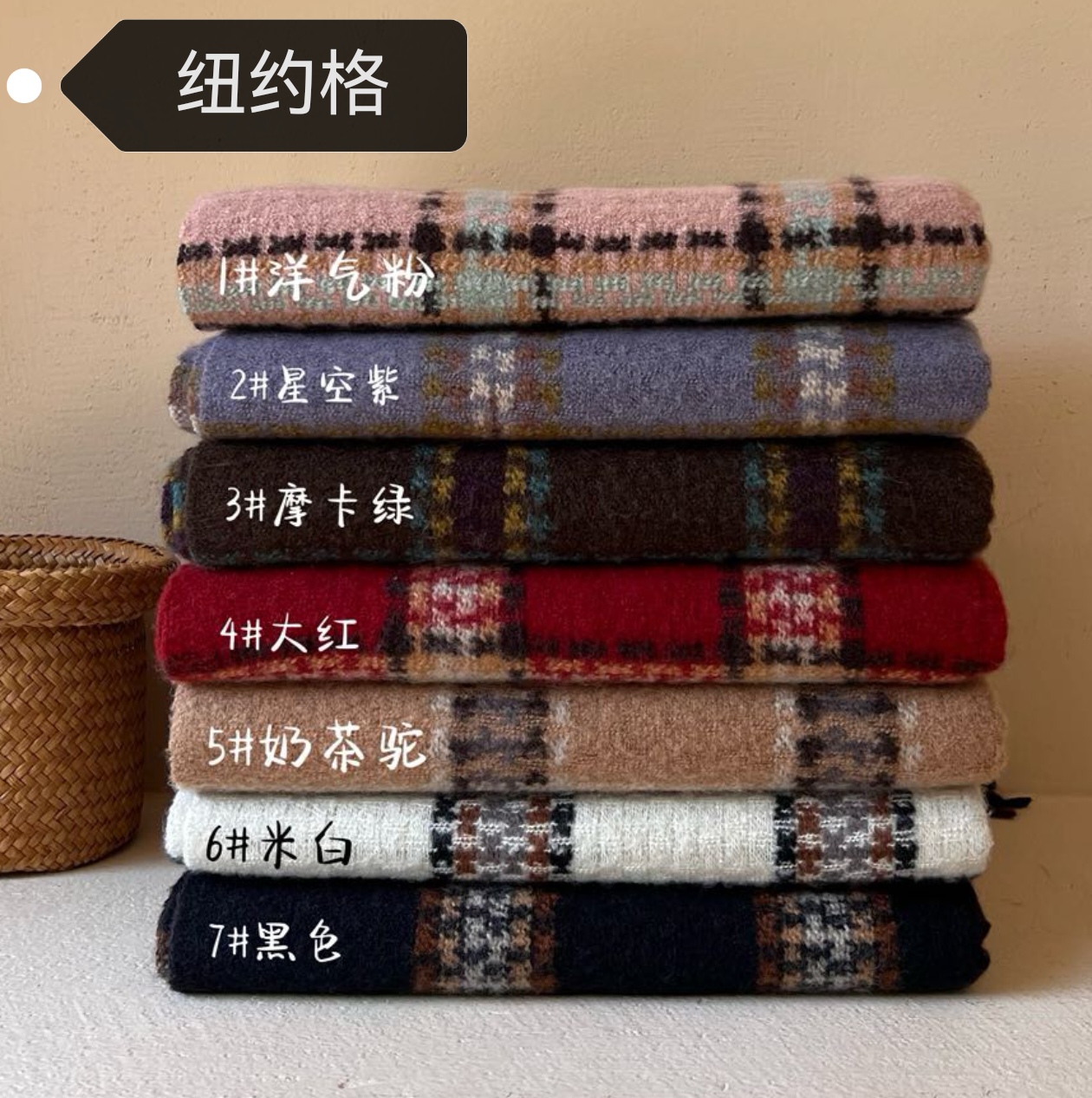 New model, in stock, New York check pattern, material: mohair loop yarn knitted, size: 65*180, weight: 310, item number: 39130290