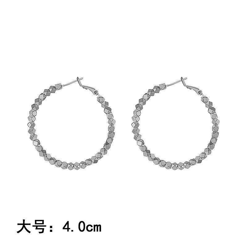 4cm silver diamond beaded circle -- ear clip