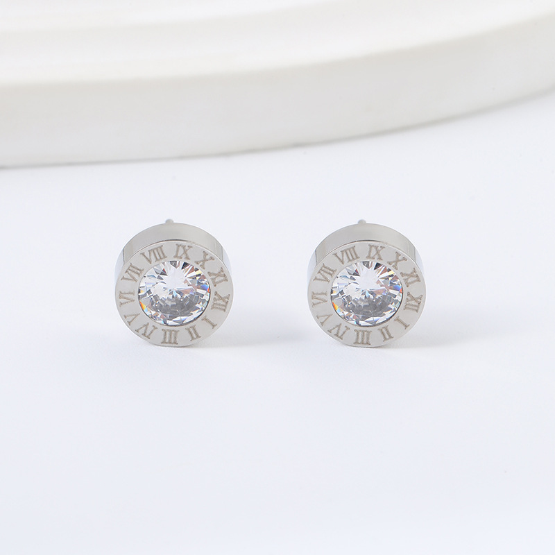 e003 roman diamond stud earrings steel color
