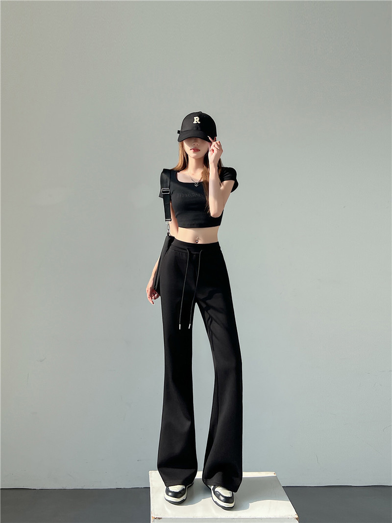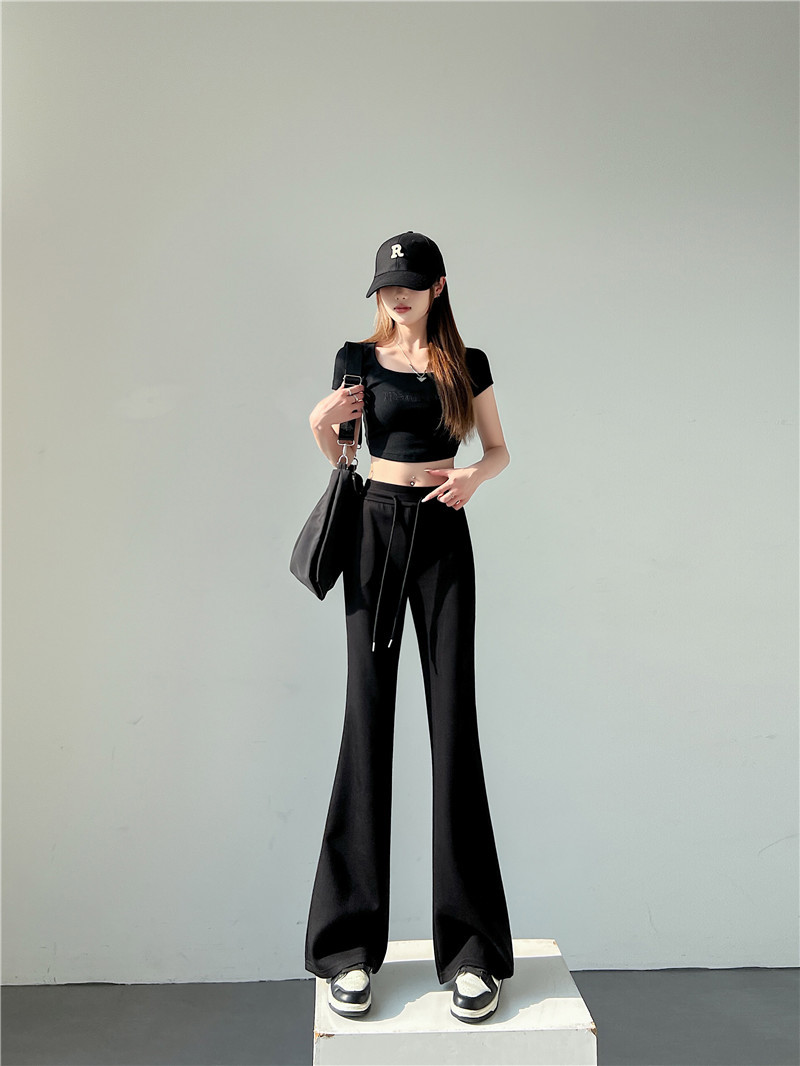 The micro-flared pants add a touch of fashion to the entire outfit compared to the ordinary straight-leg pants.