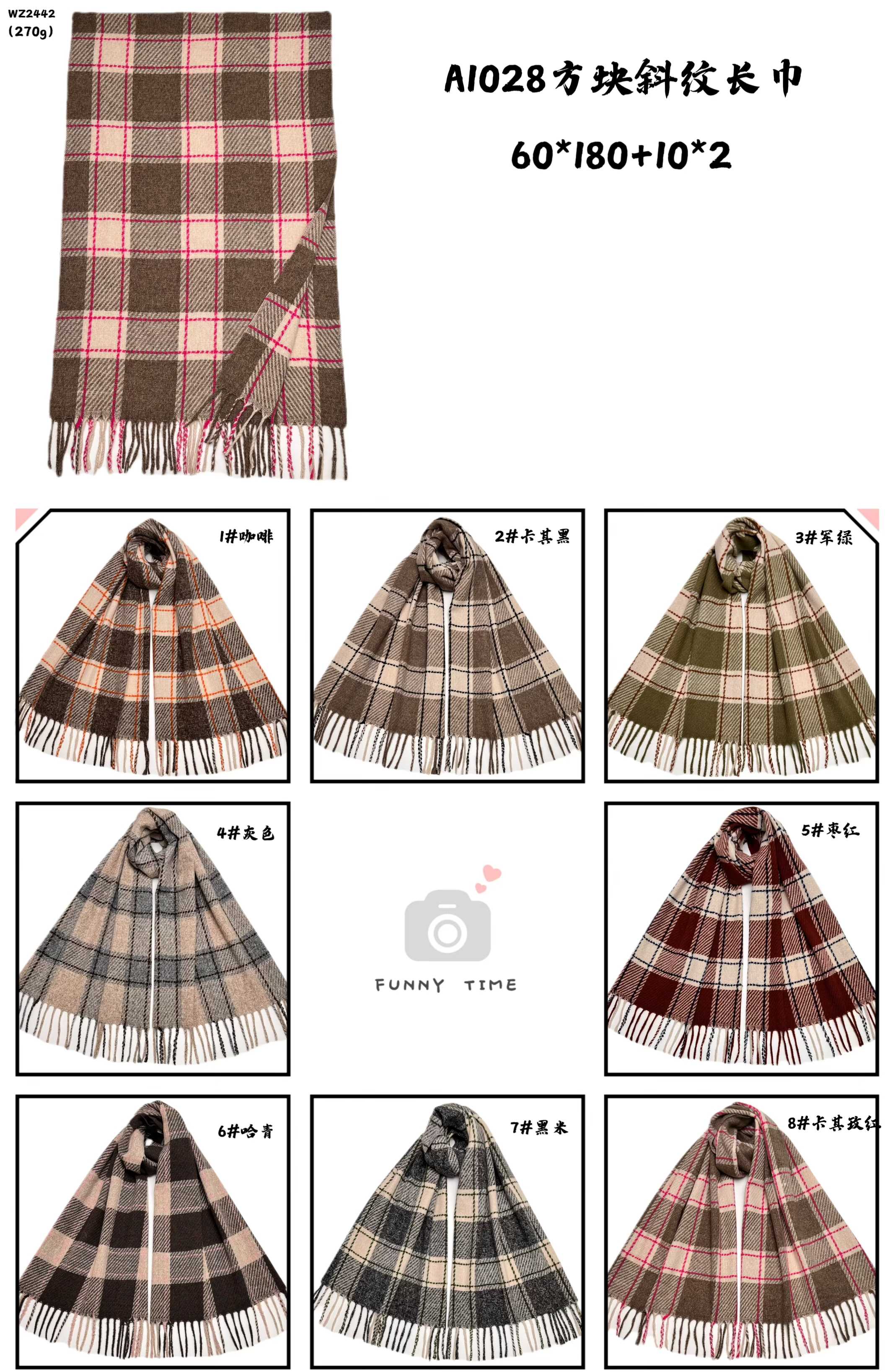 Check pattern, material: polyester, weight: 270gsm, size: 65*180cm, item number: 40128288