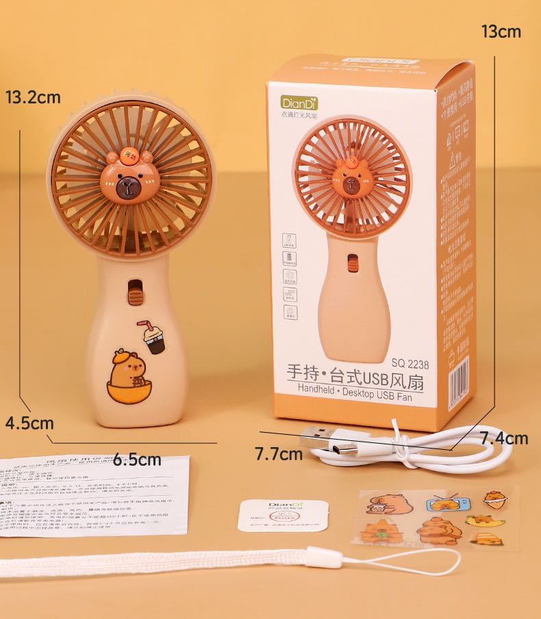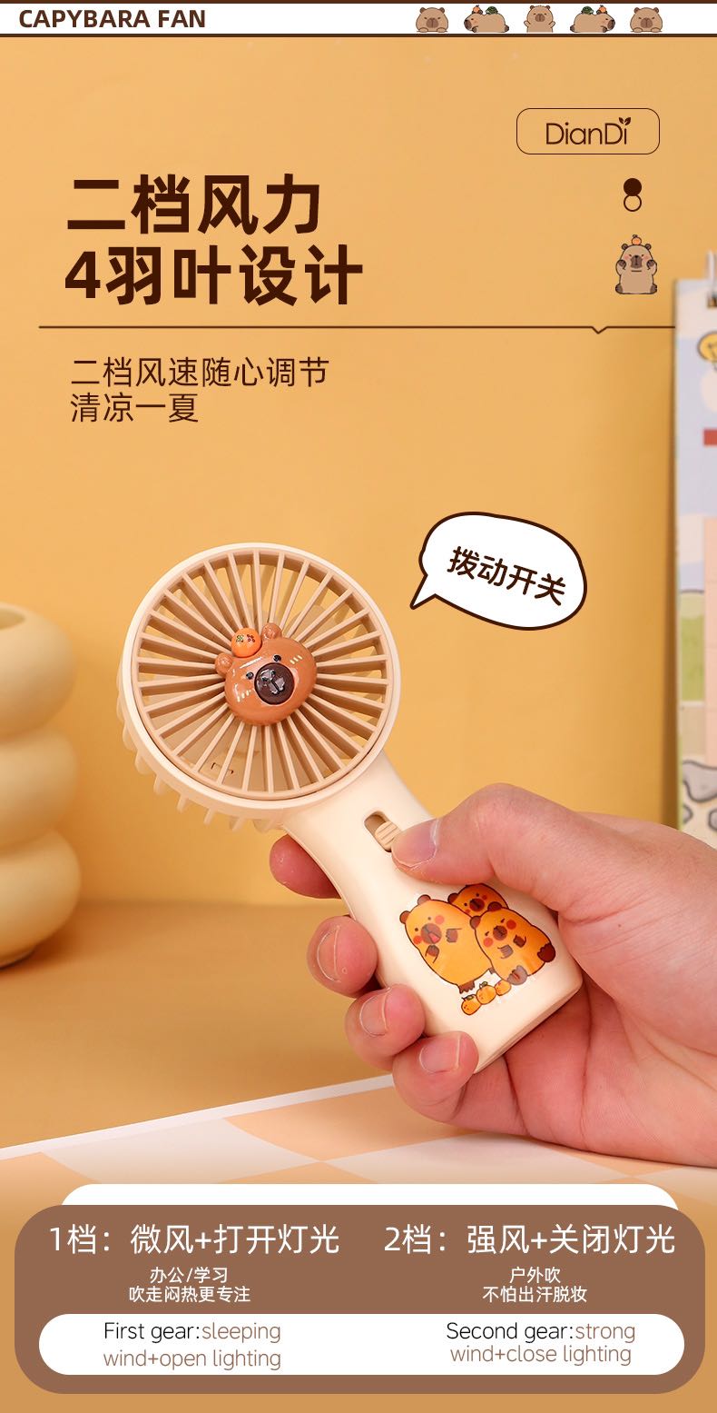 【产品名称】卡皮巴拉灯光两档充电风扇