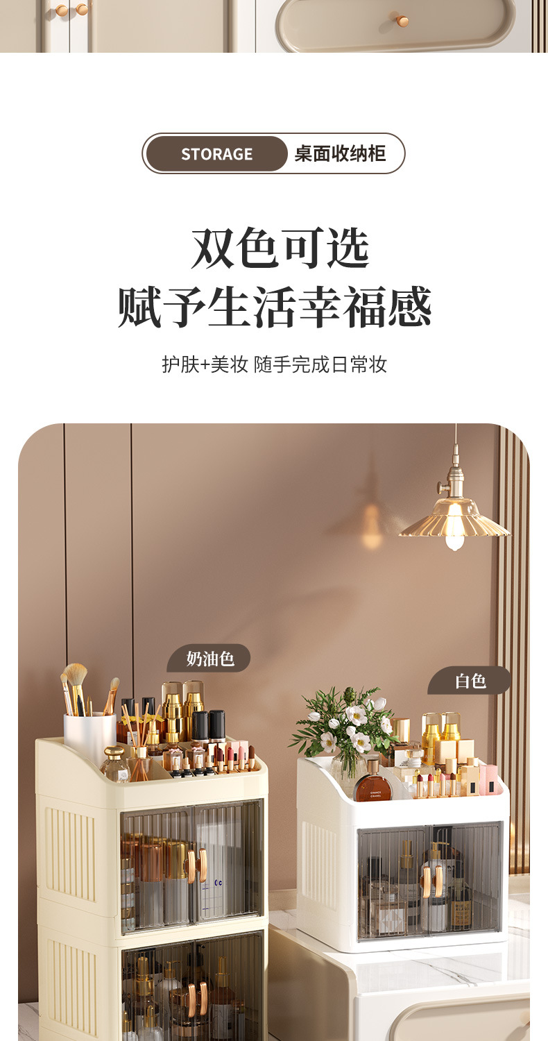 new crown folding cream black three-layer two-drawer